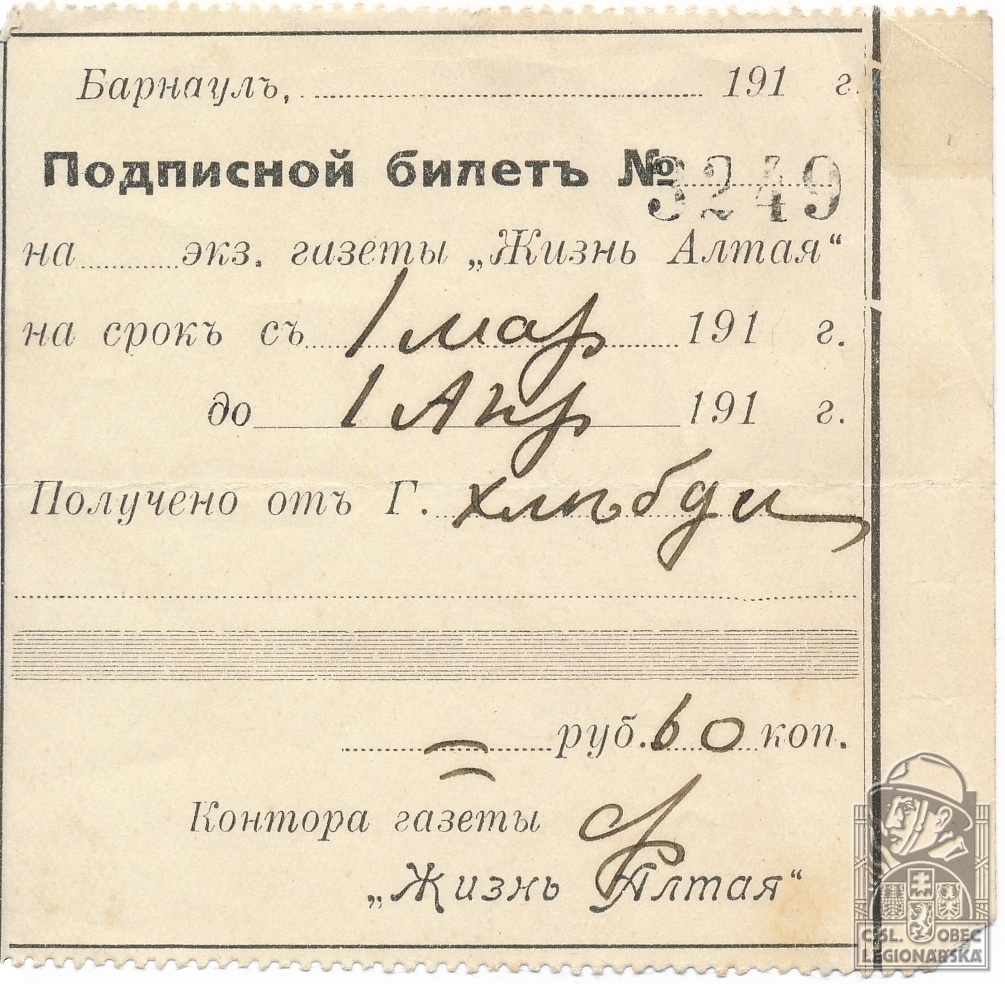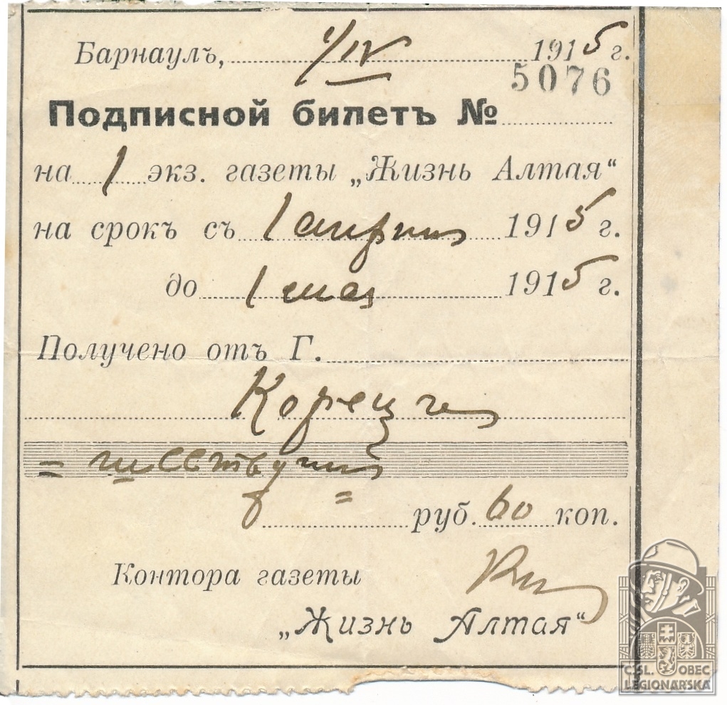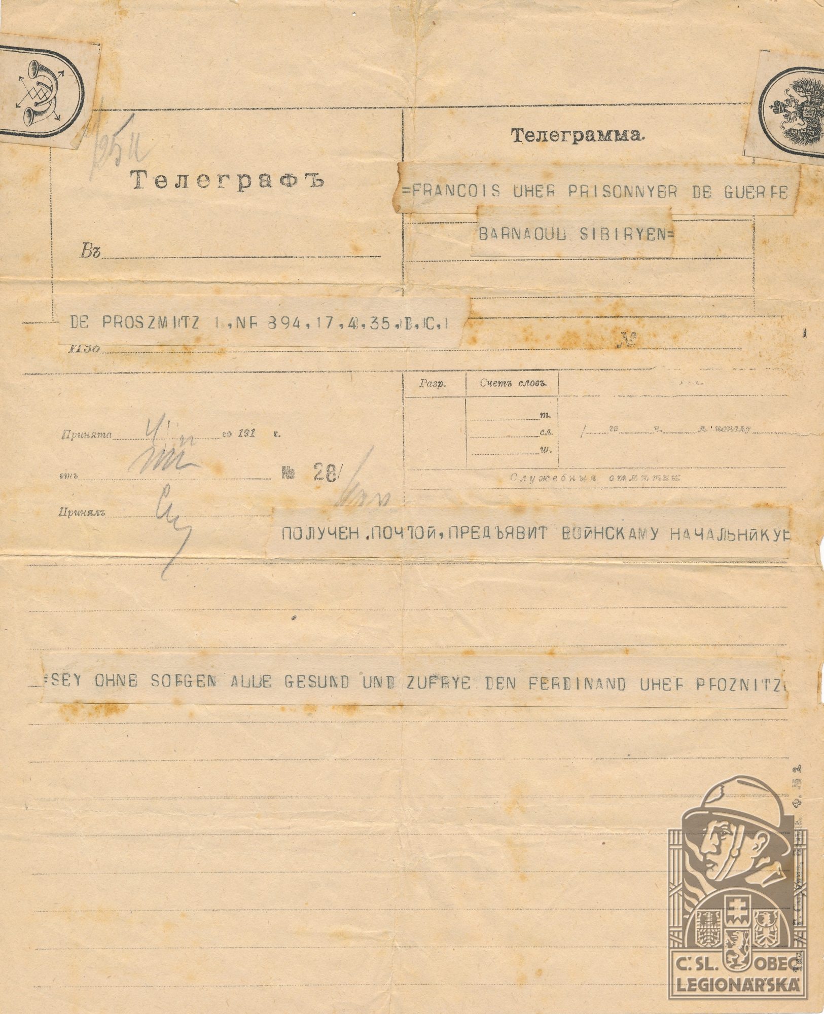 Zdroj informací: legionářský poslužný spis osobní karta legionáře Archiv ČsOL 585/2019