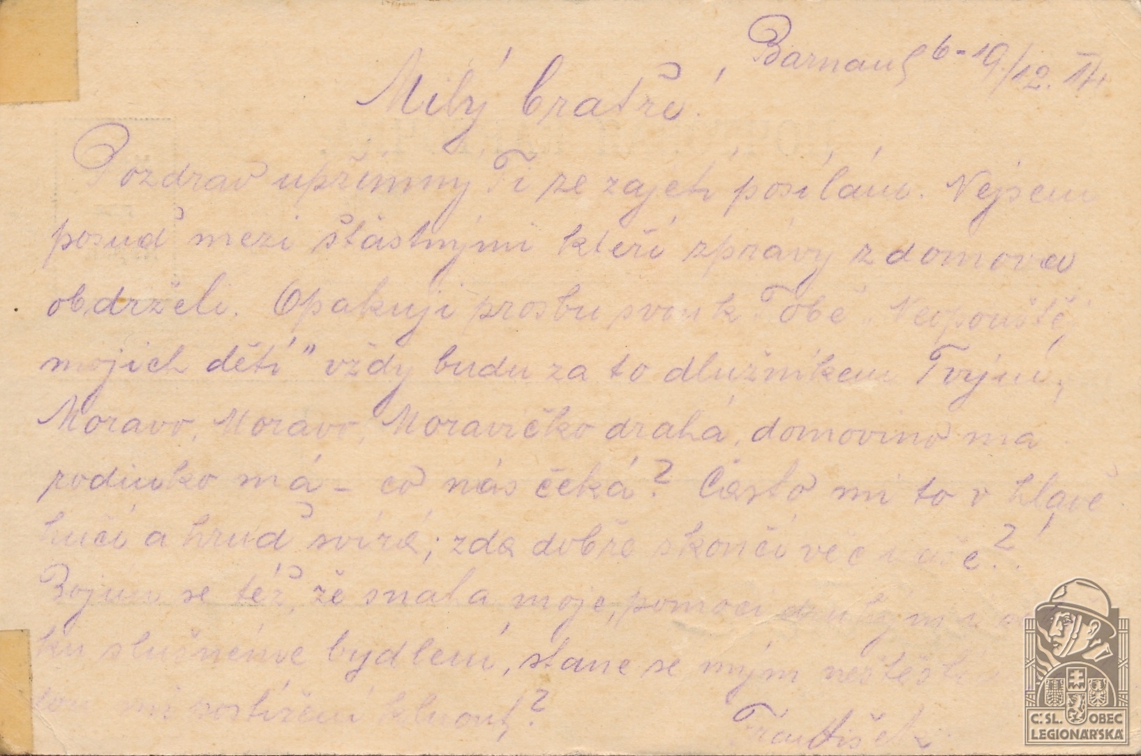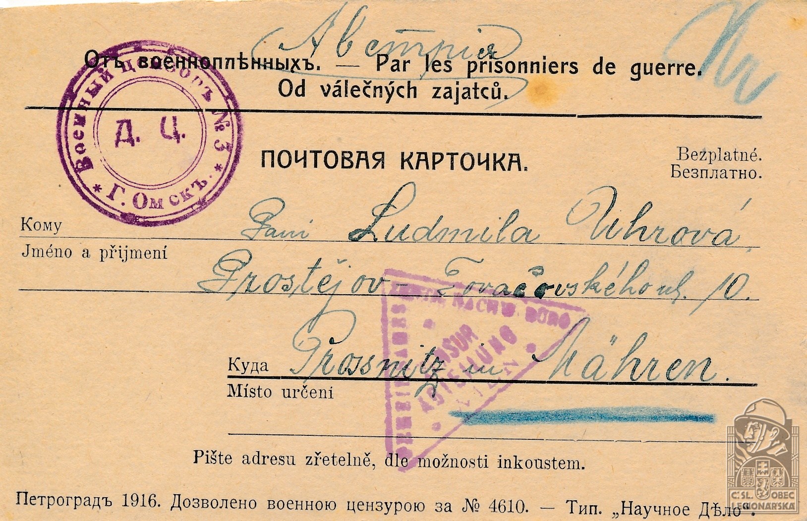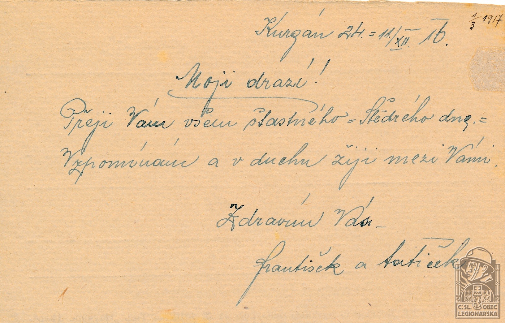 Jednotka v době zařazení:7.stř.pl. ( Čs. legie v Rusku )