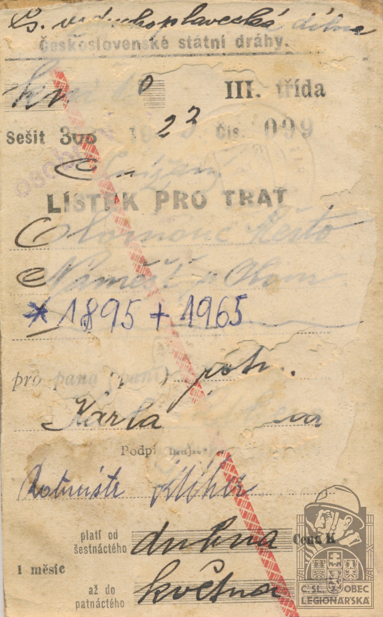 Zdroj informací: legionářský poslužný spis osobní karta legionáře