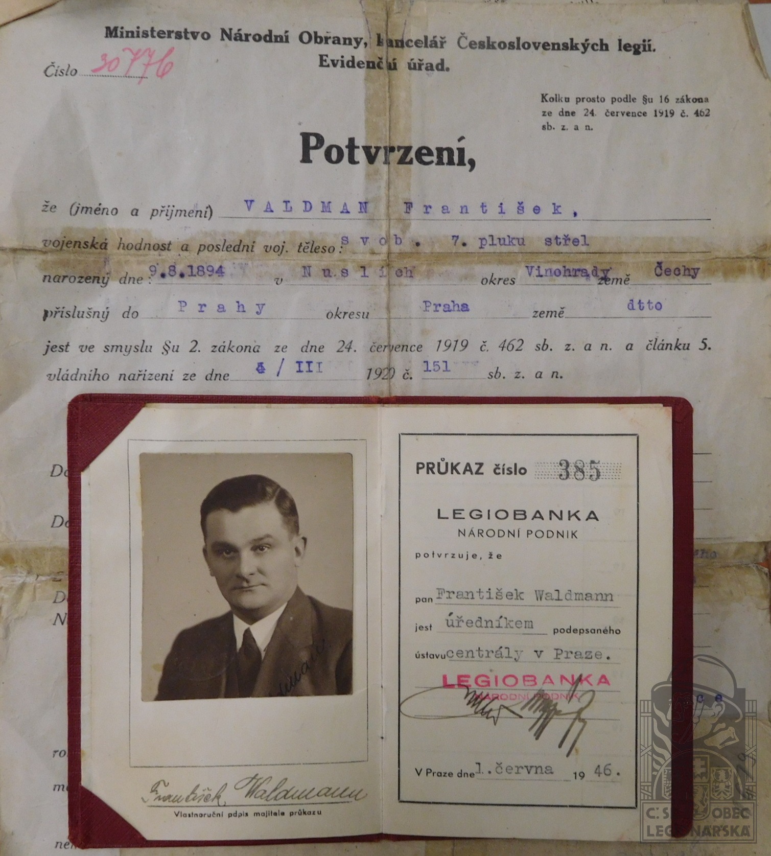 dokumenty spojené s osobou legionáře