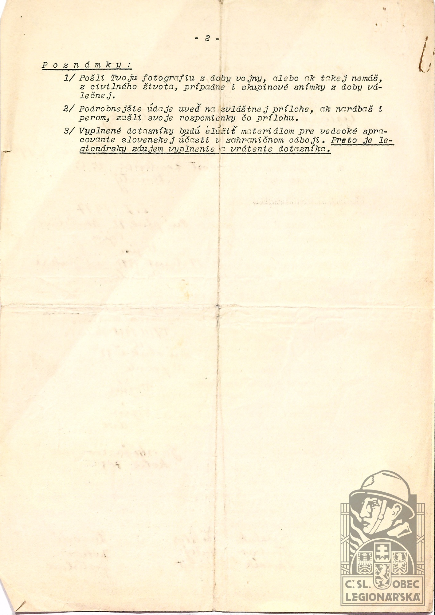 Zdroj informací: legionářský poslužný spis osobní karta legionáře