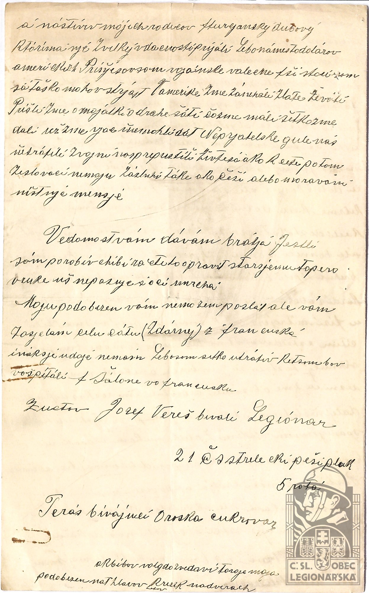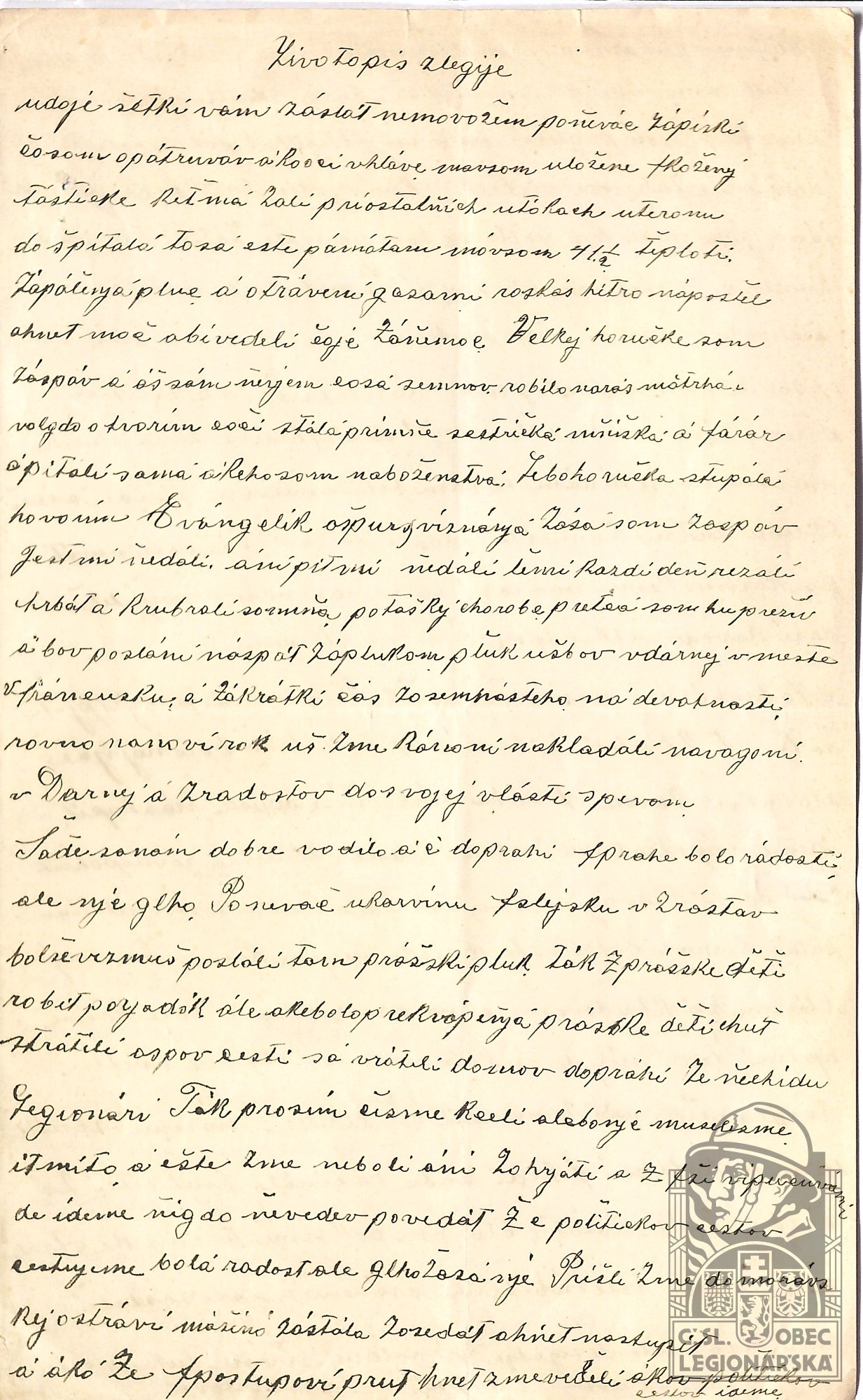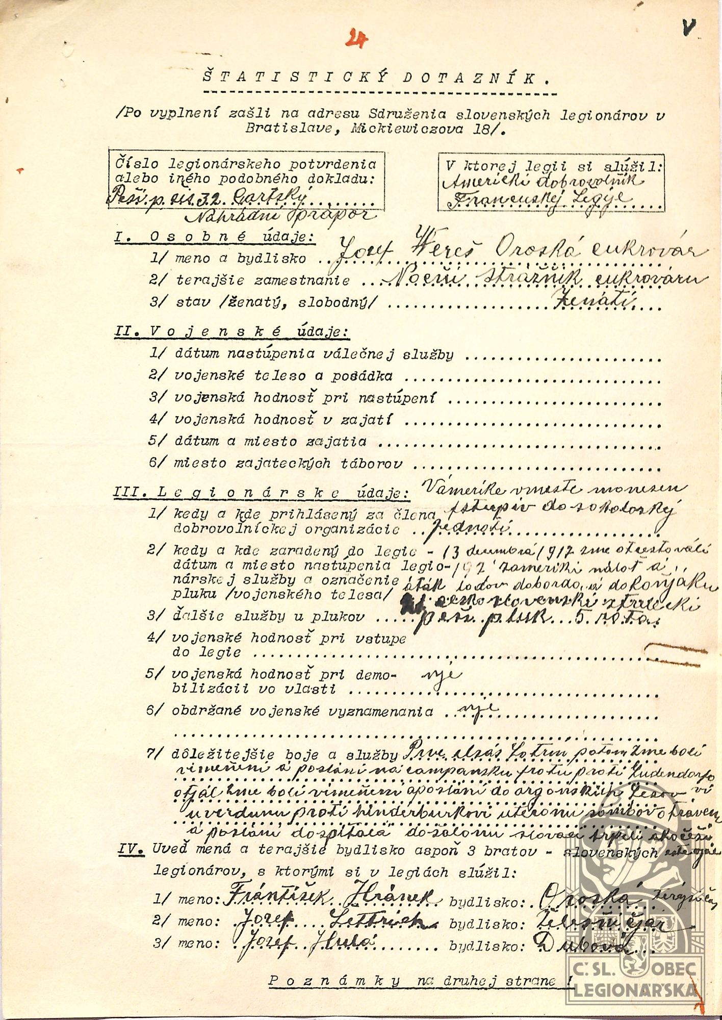 Zdroj informací: legionářský poslužný spis osobní karta legionáře