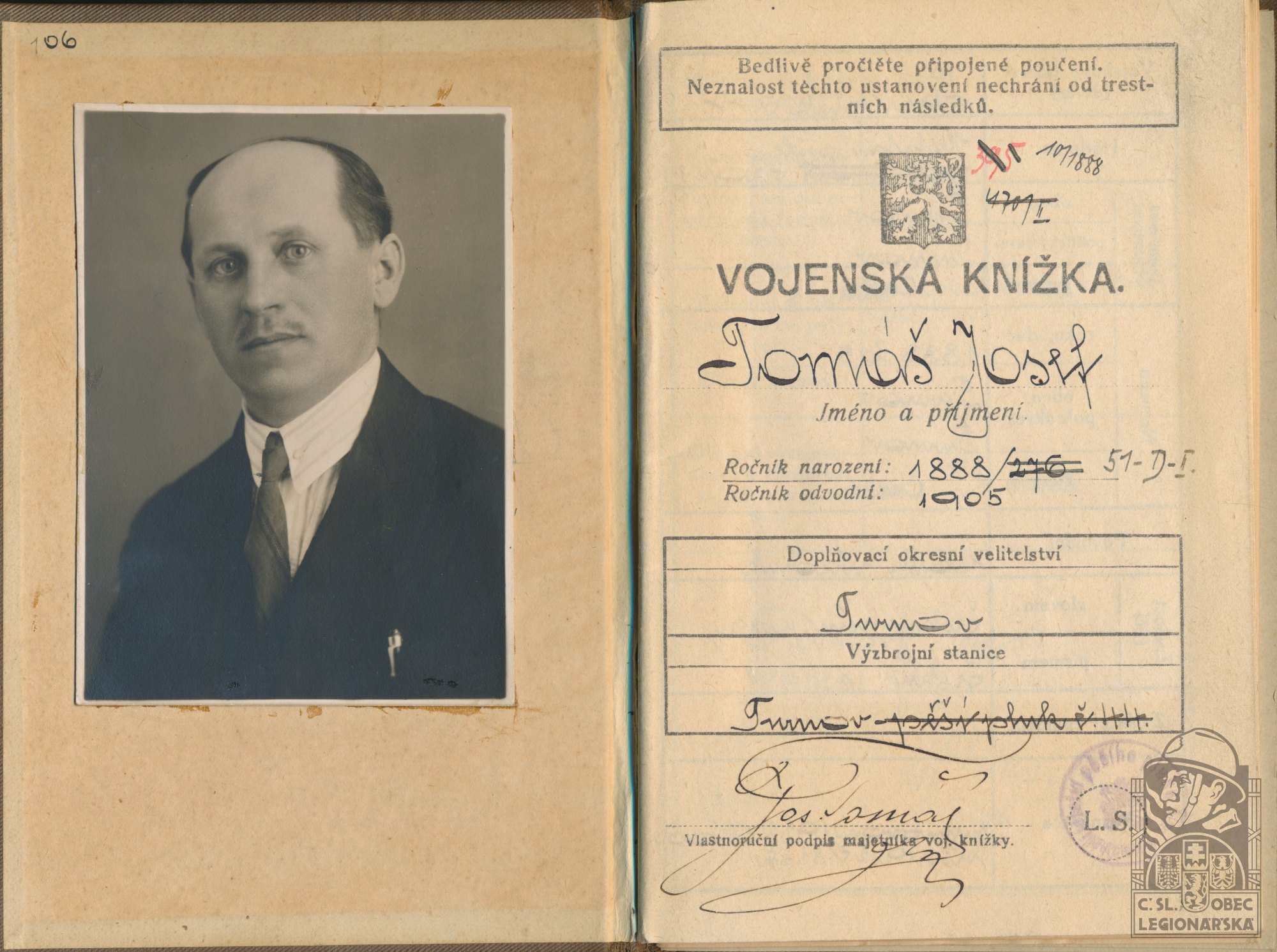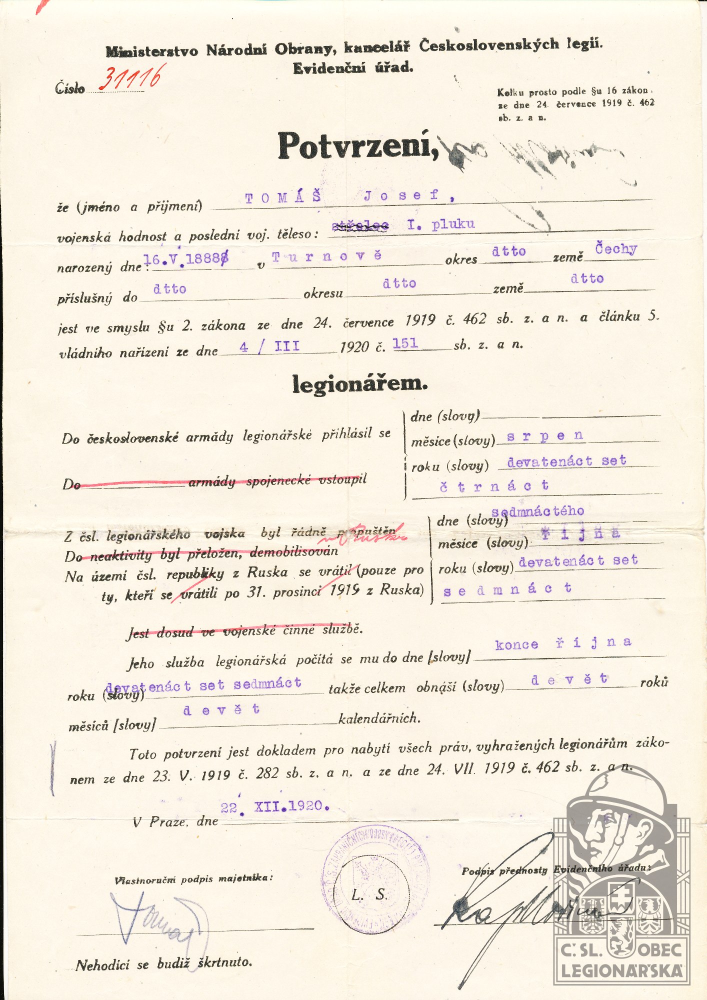 Zdroj informací: legionářský poslužný spis osobní karta legionáře
