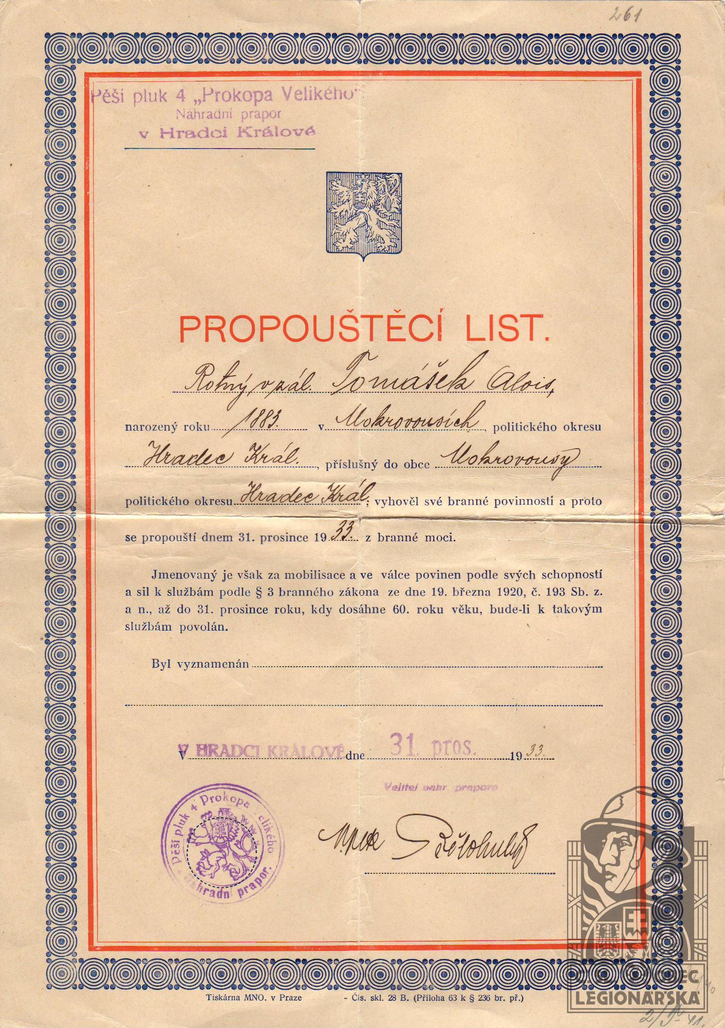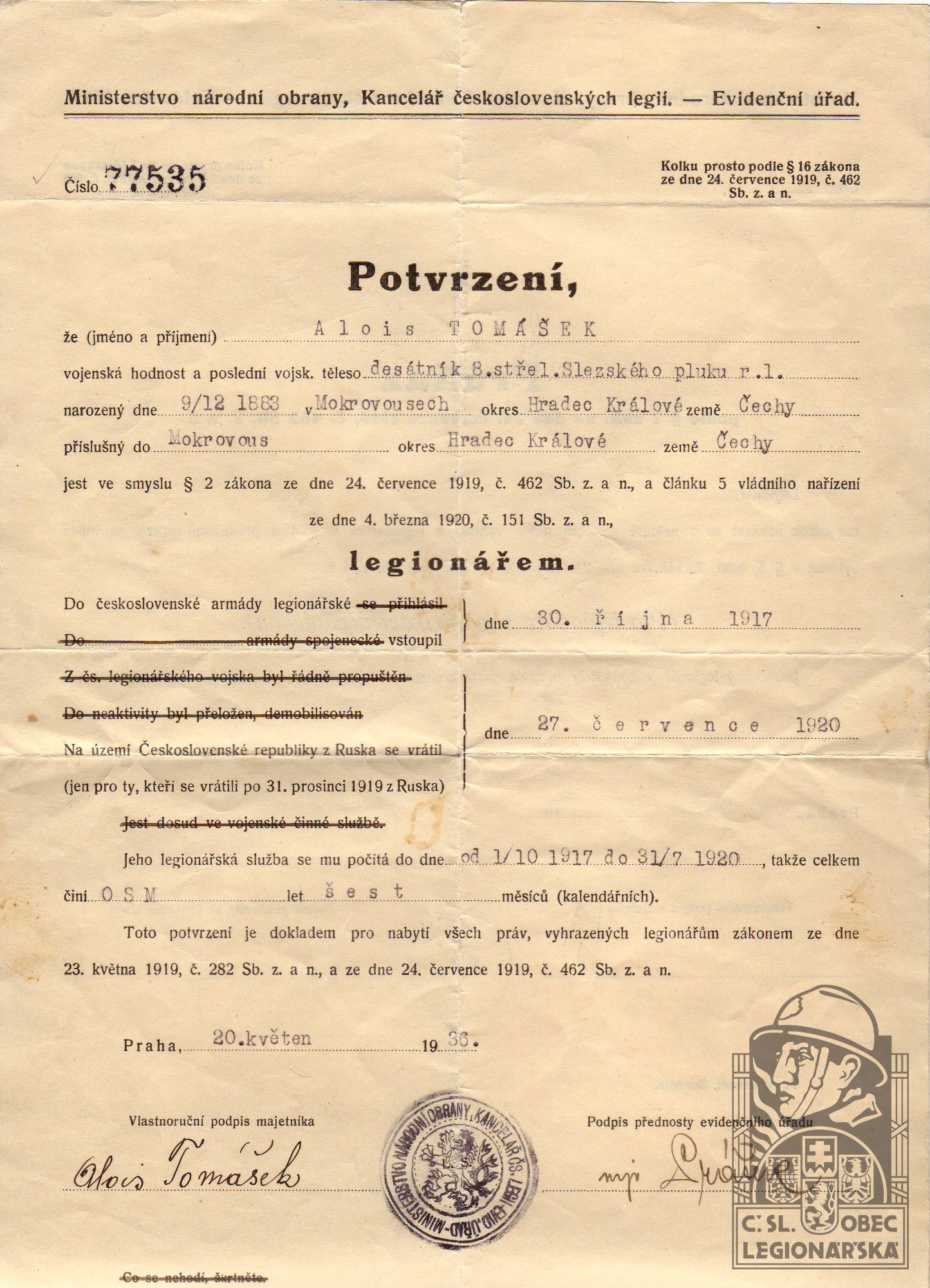 Zdroj informací: legionářský poslužný spis osobní karta legionáře