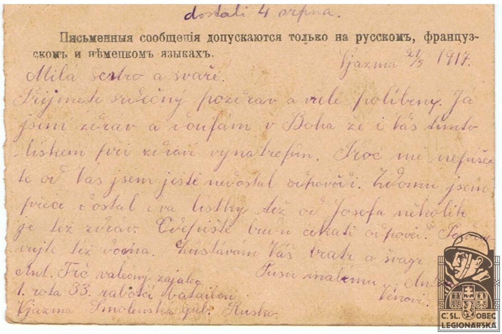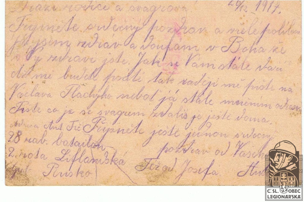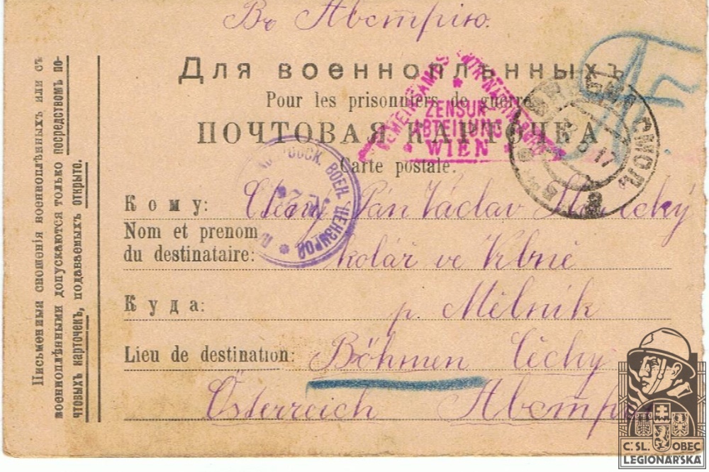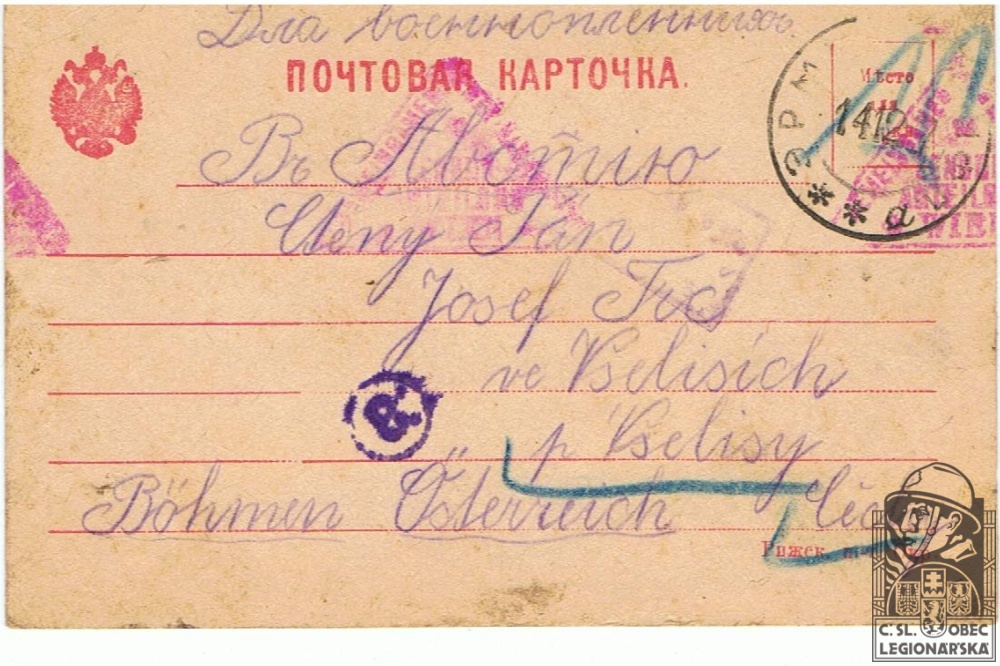 Jednotka v době zařazení:10.stř.pl. ( Čs. legie v Rusku )