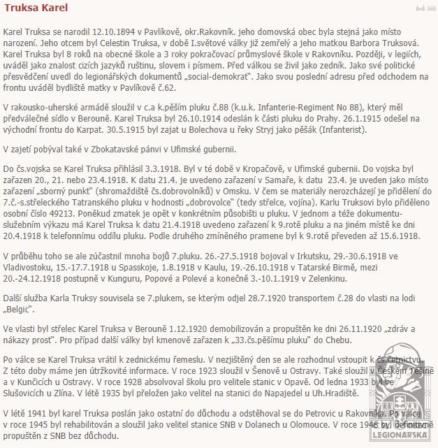 Zdroj informací: legionářský poslužný spis osobní karta legionáře
