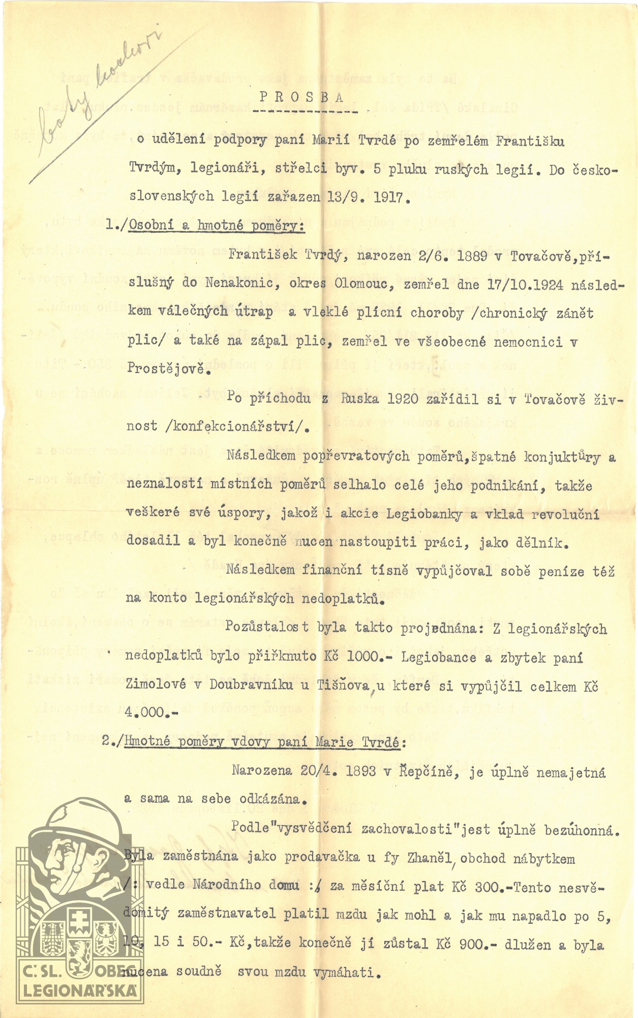 dokumenty spojené s osobou legionáře