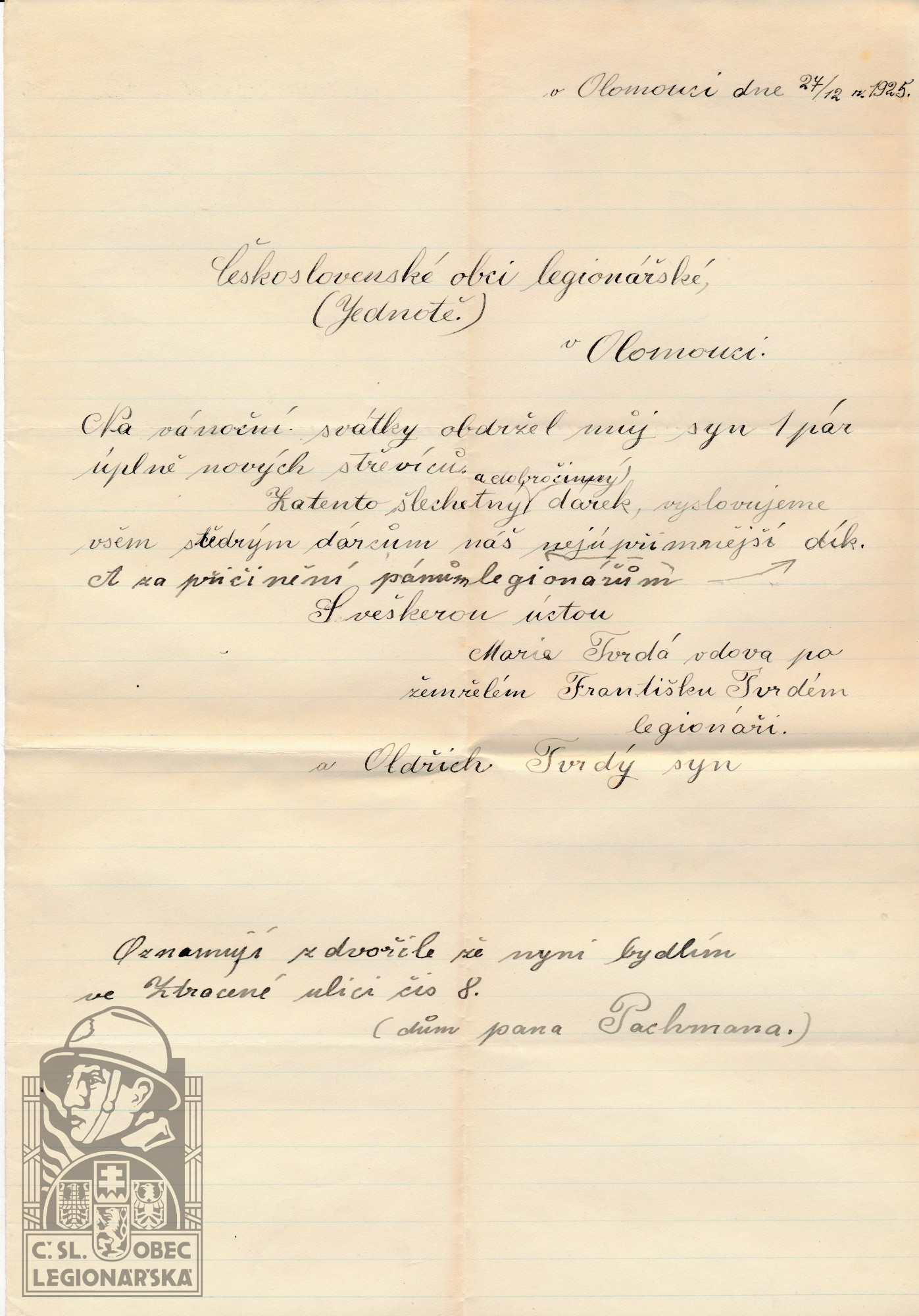 Zdroj informací: legionářský poslužný spis SOkA Olomouc