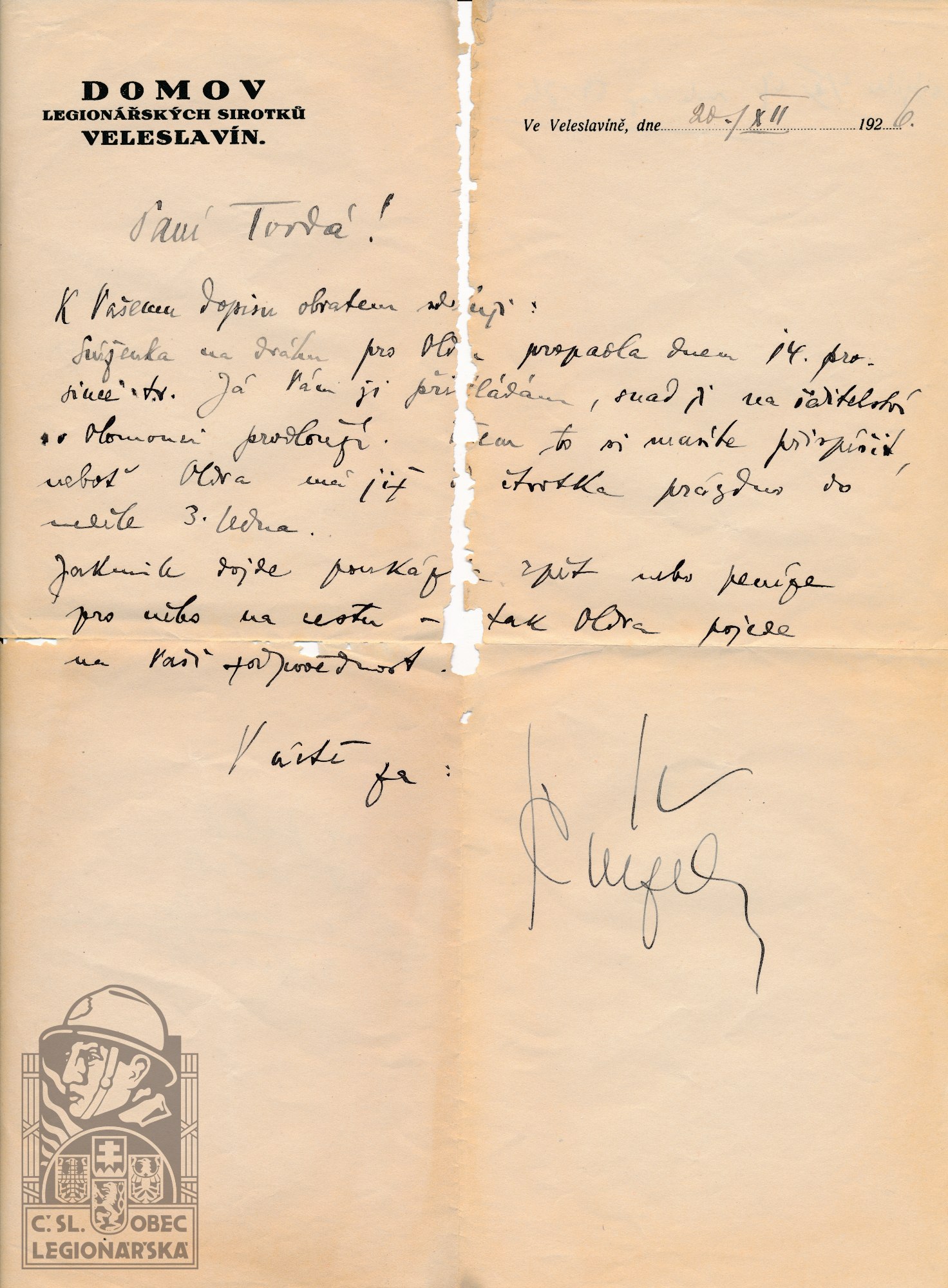 Zpráva z domu legionářských sirotků Veleslavín 1926 (118196.627)