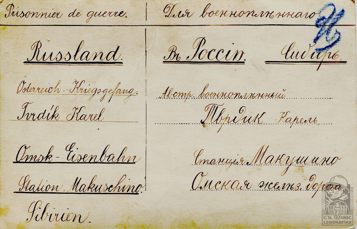 Jednotka v době zařazení:2.stř.pl. ( Čs. legie v Rusku )