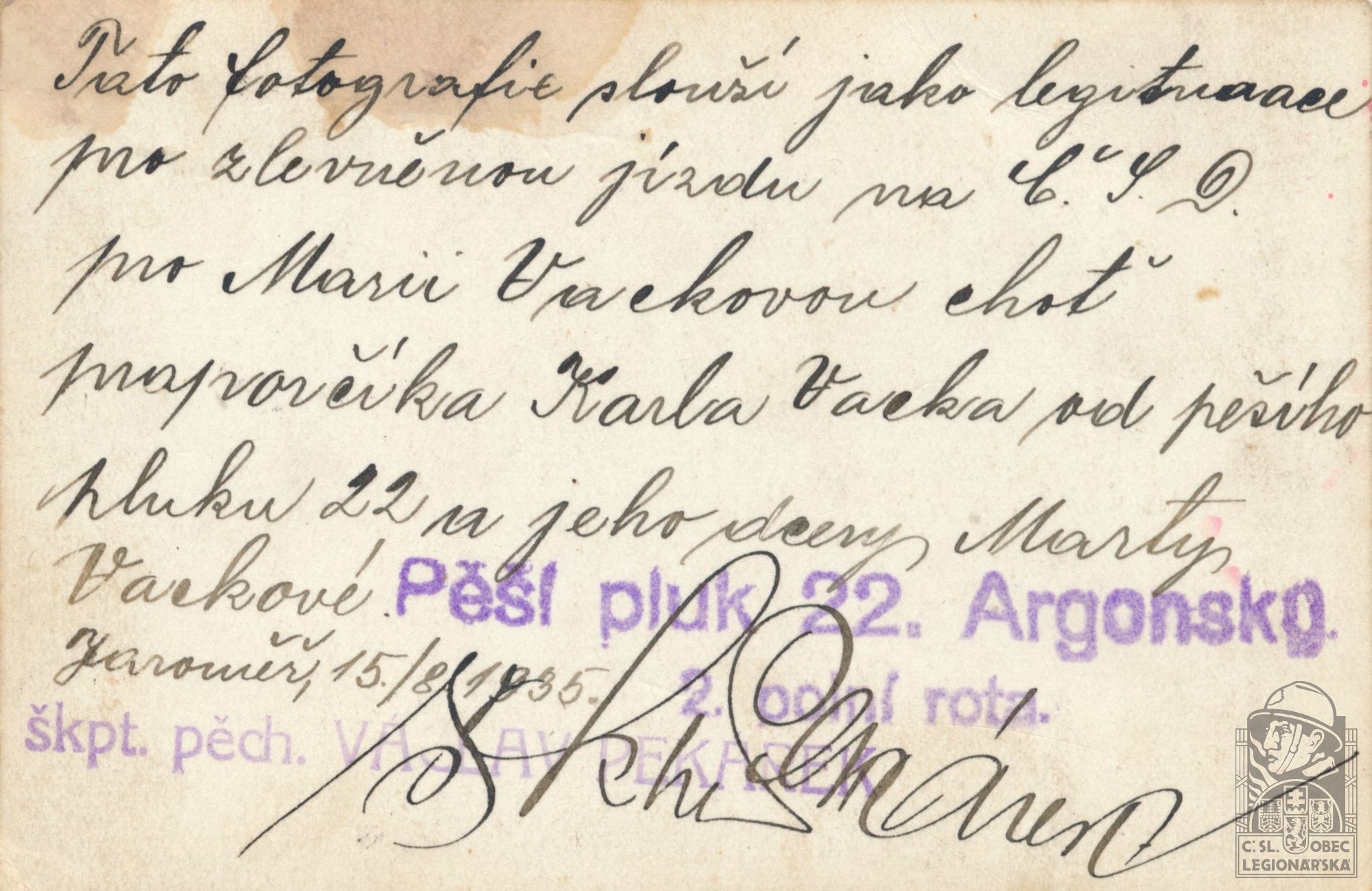 dokumenty spojené s osobou legionáře