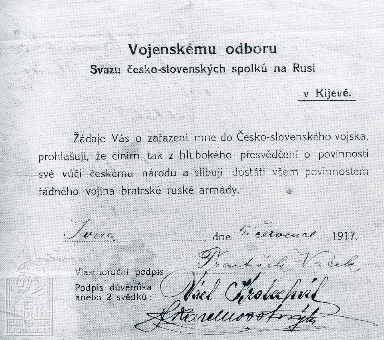 Datum zařazení do legií:5.8.1917