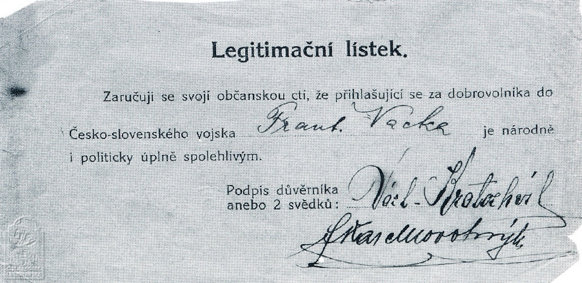 dokumenty spojené s osobou legionáře