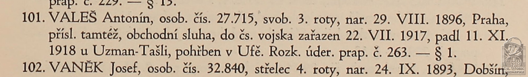 Konec v legiích:11.11.1918 ( Padl v boji )