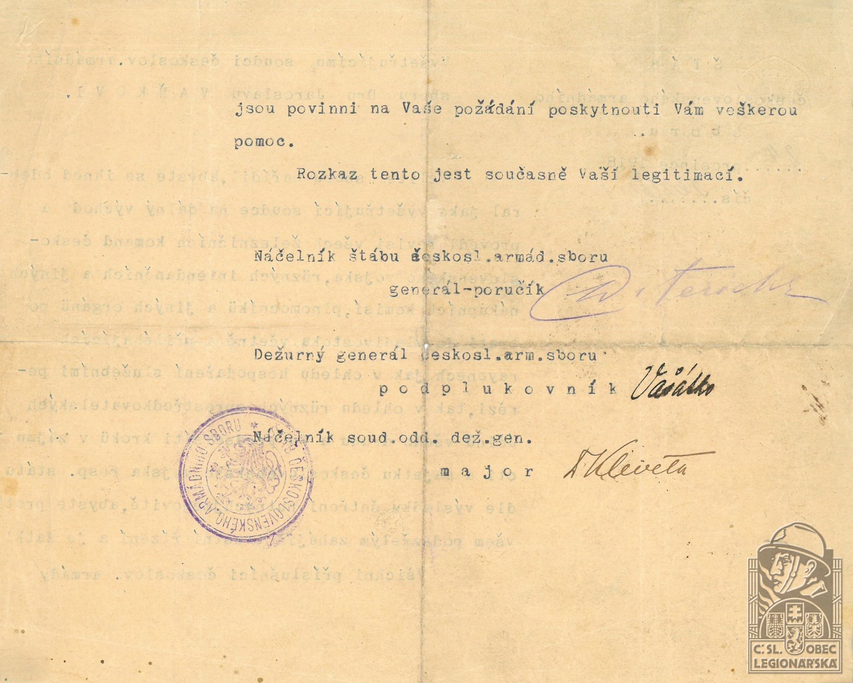 dokumenty spojené s osobou legionáře