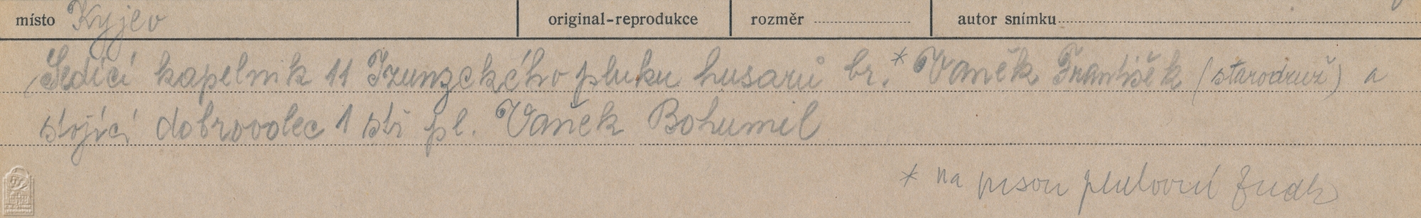 Zdroj informací: legionářský poslužný spis osobní karta legionáře