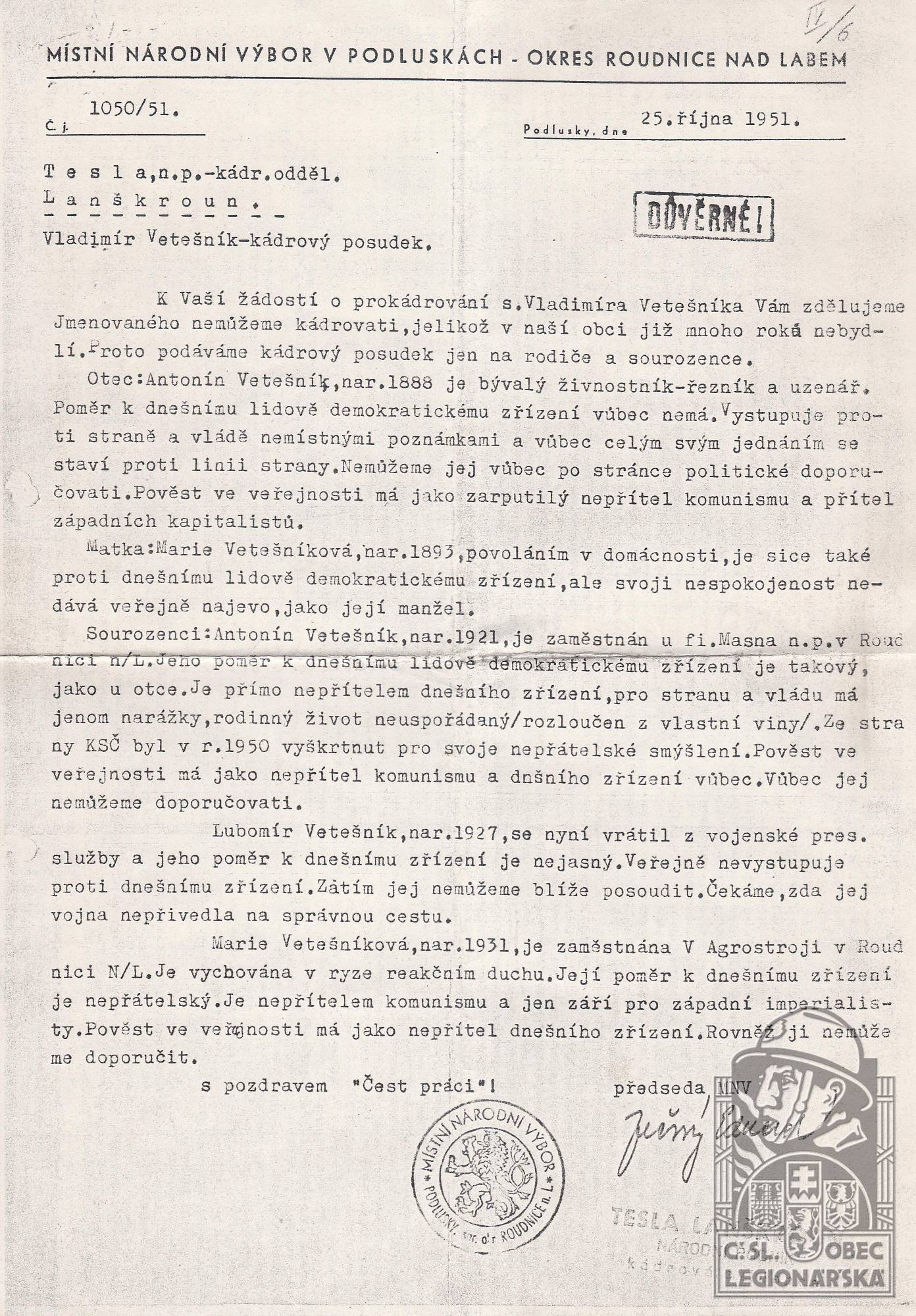 Poznámka:Po r. 1948 mu byla znárodněna živnost - uzenářství.