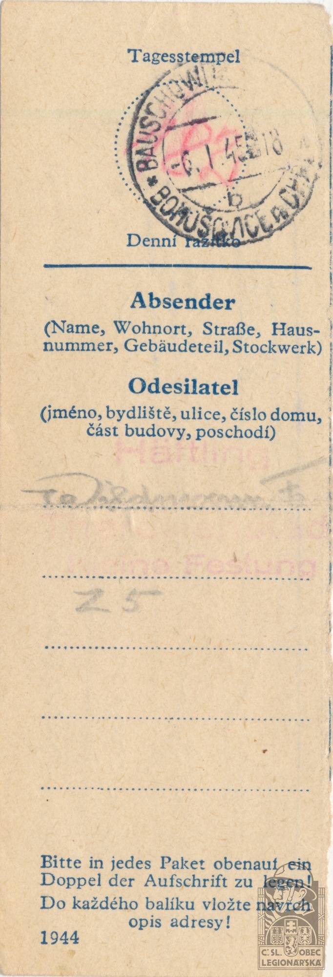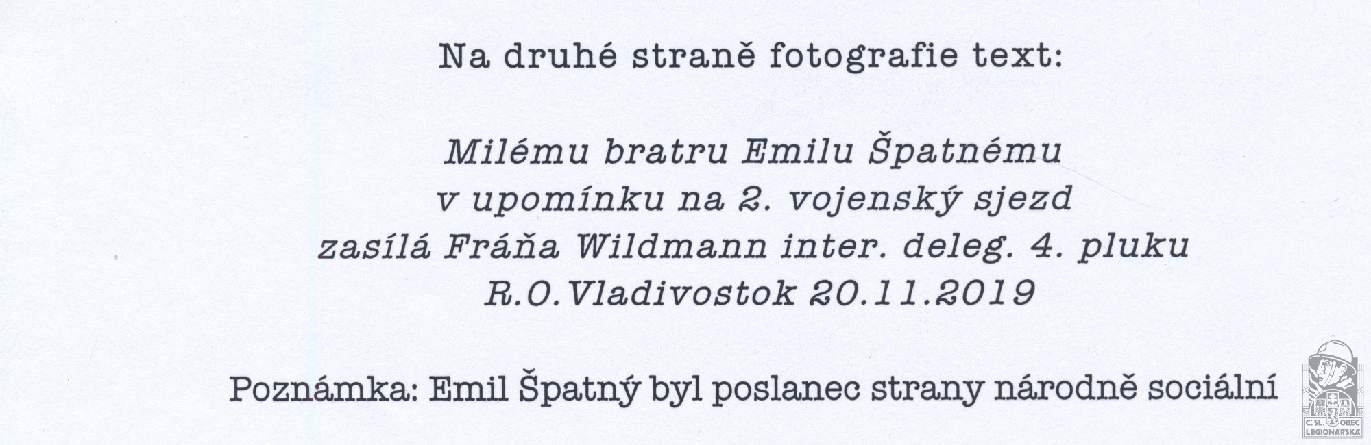 Poznámka:delegát 4. stř. pluk II. Sjezdu, internován na Ruském ostrově