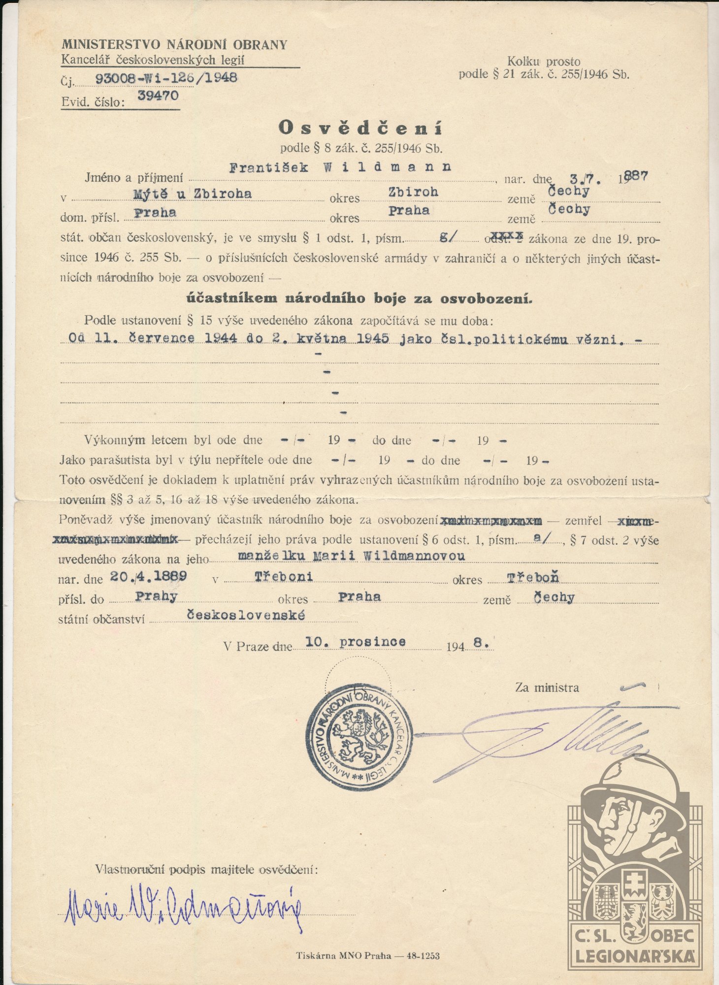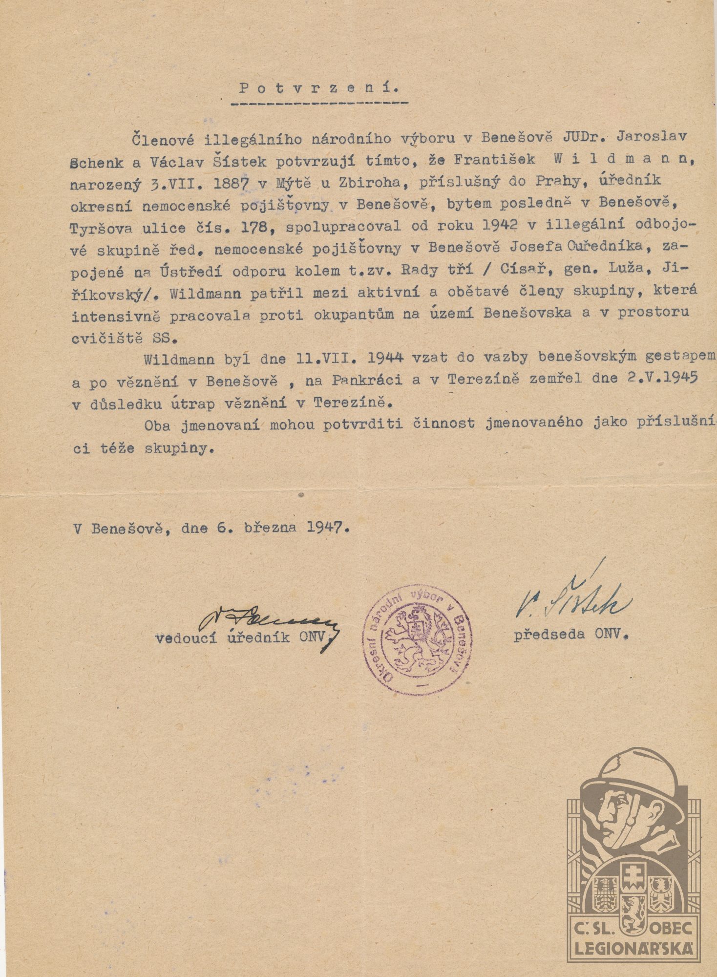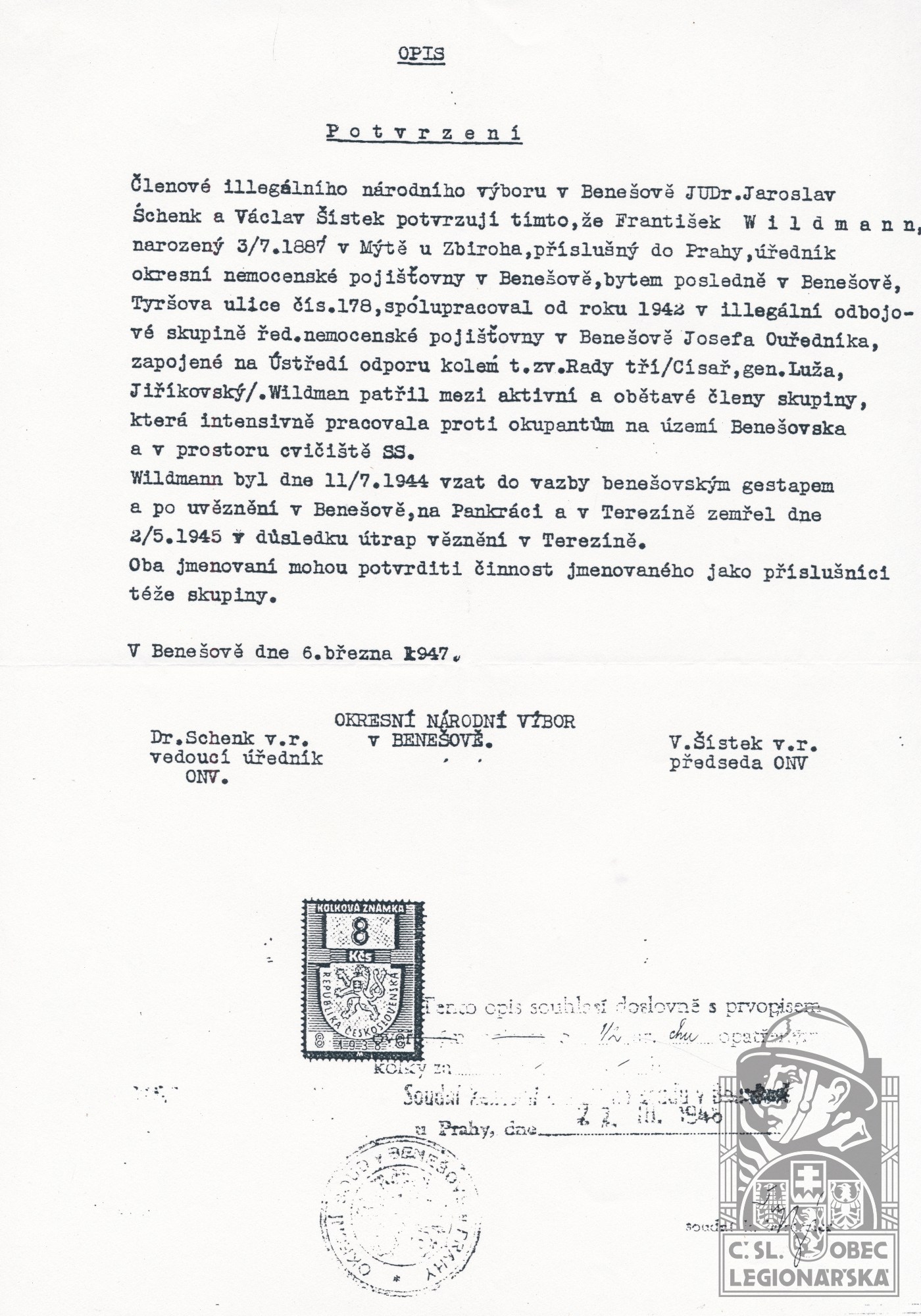 Účast v druhém odboji:ano, Ilegální komunistická organizace