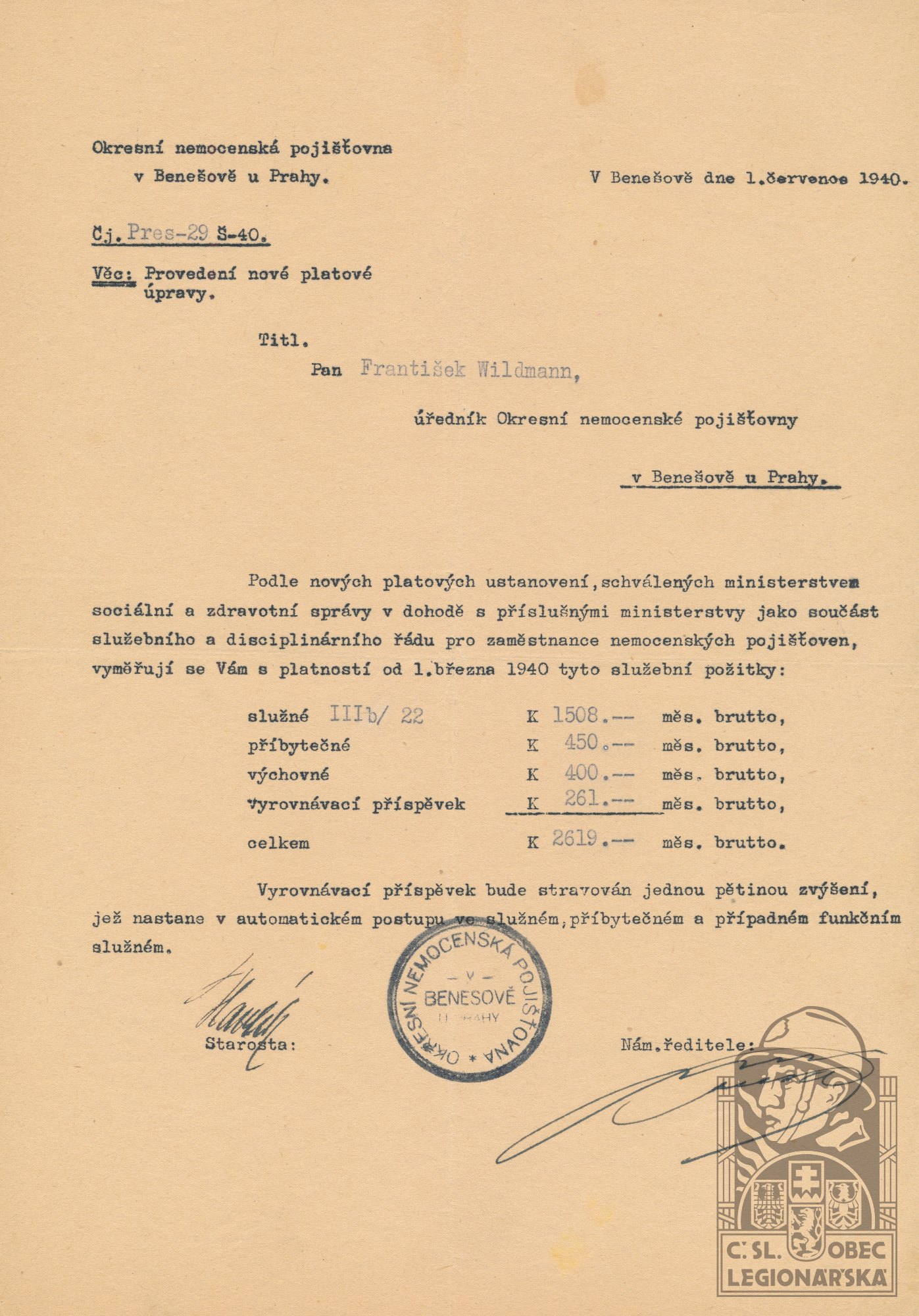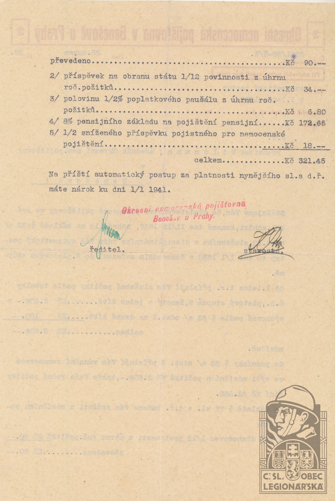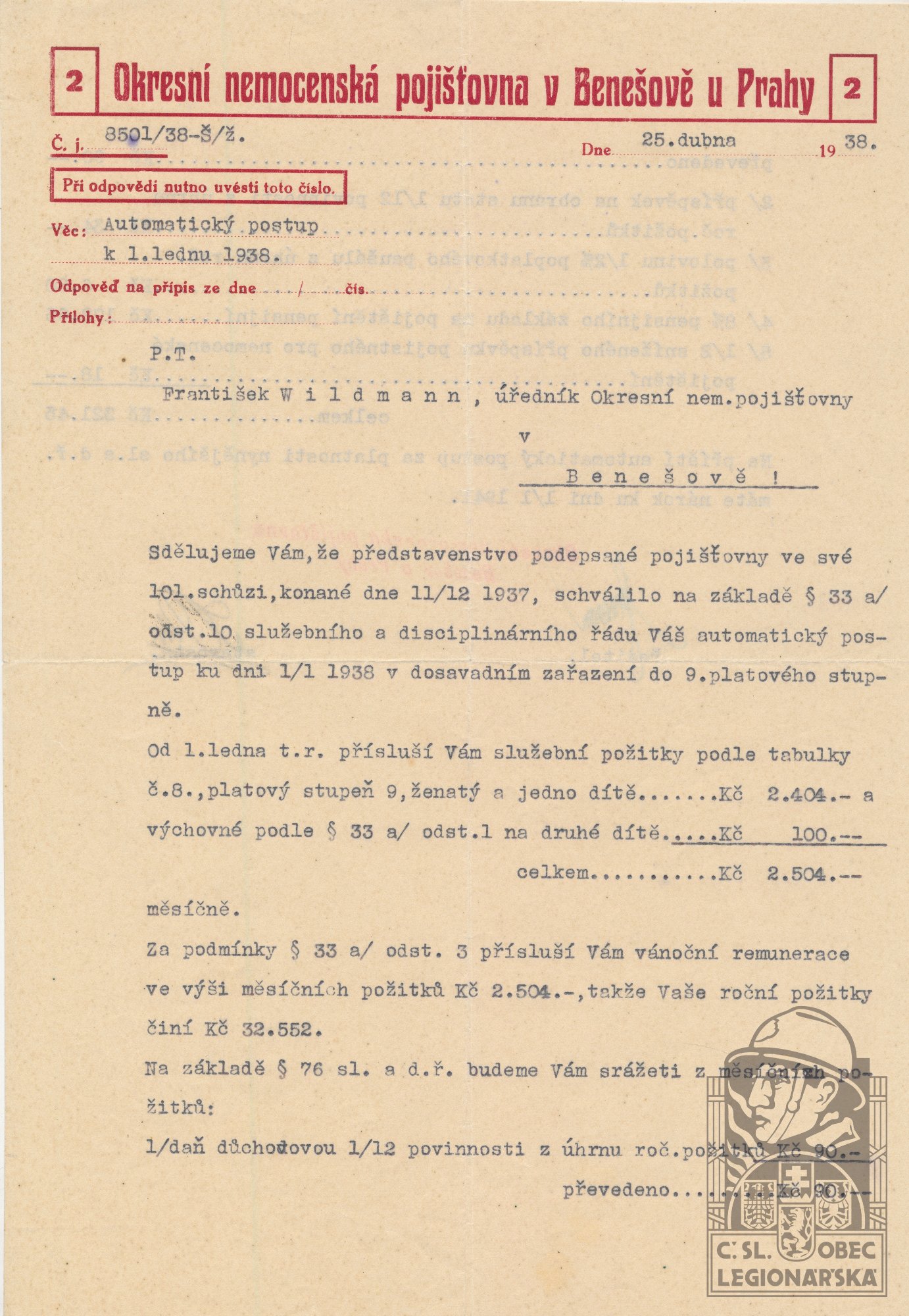 Povolání v letech 1918 - 1938:úředník pojišťovny v Benešově