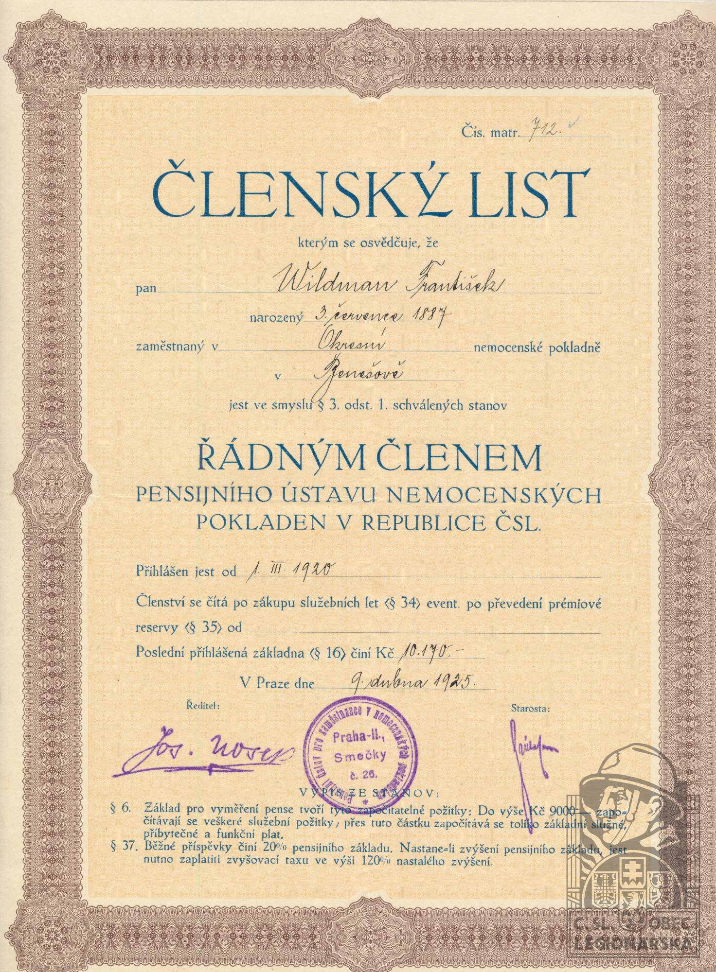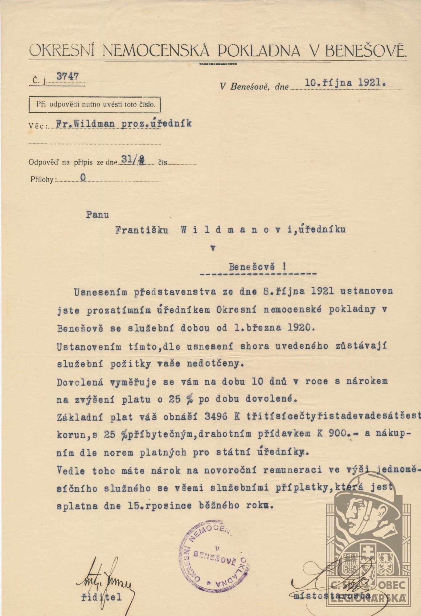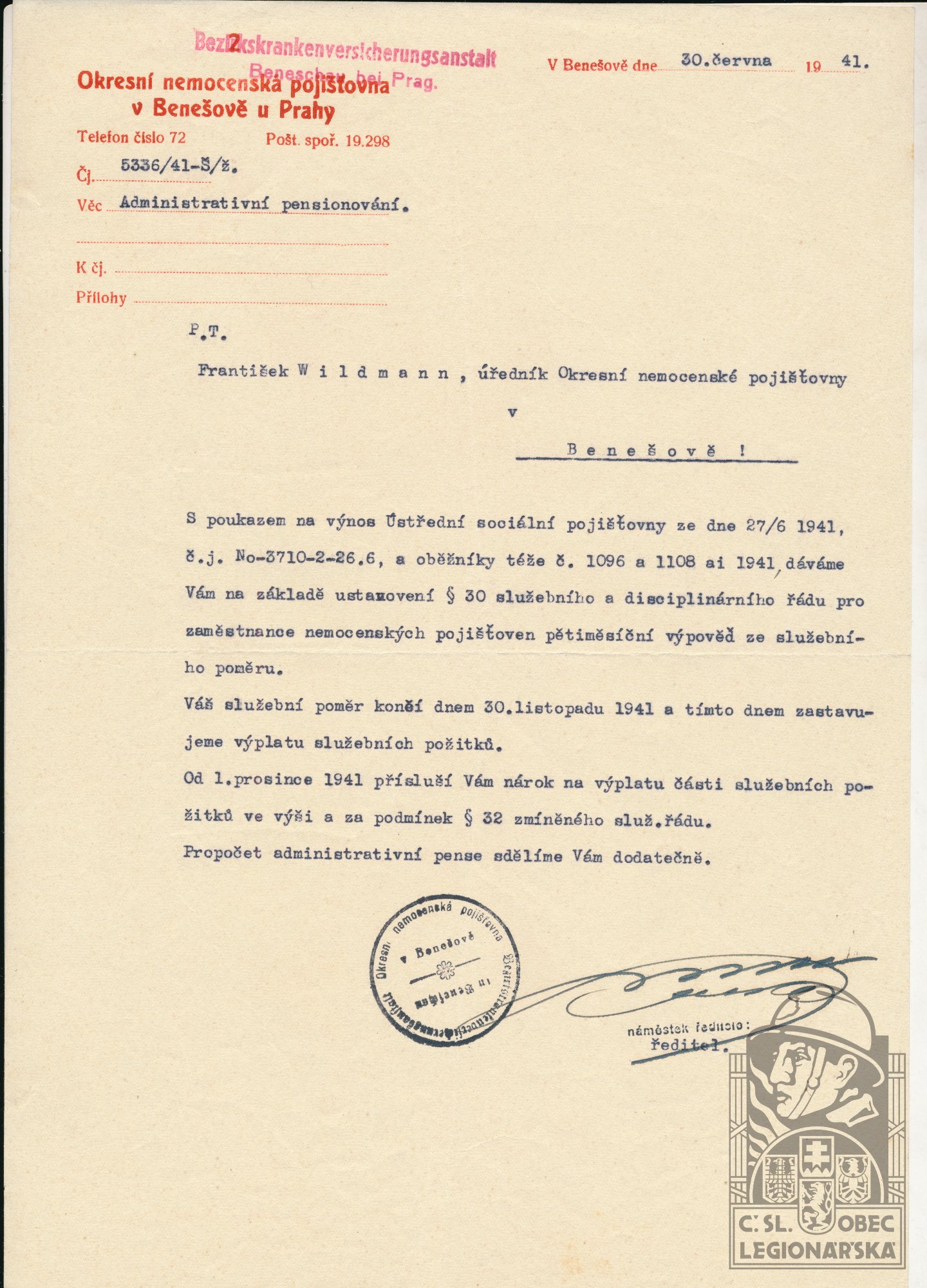 Povolání v letech 1918 - 1938:úředník pojišťovny v Benešově