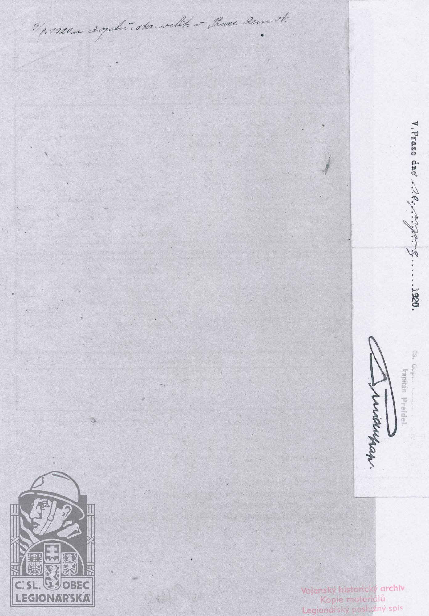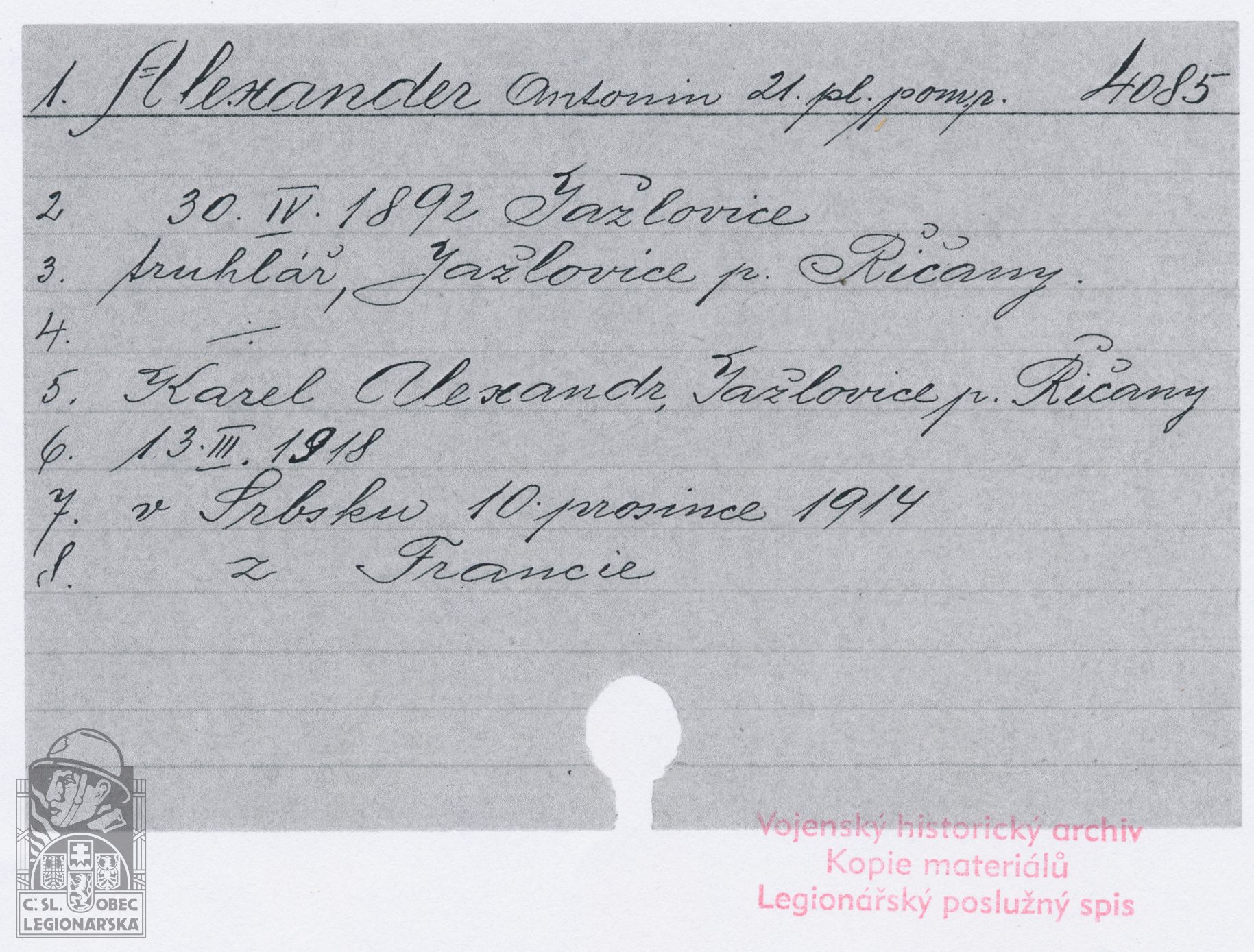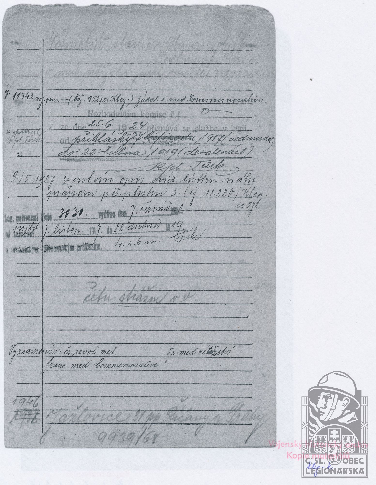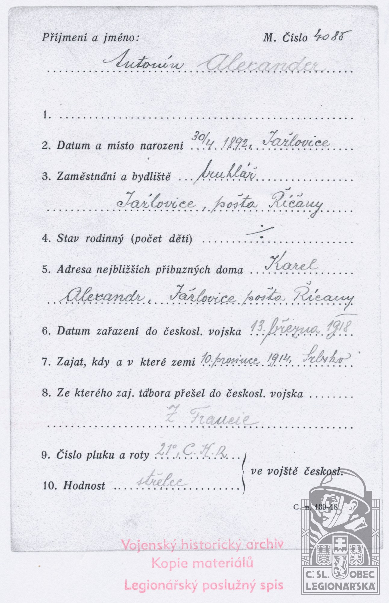 Zdroj informací: legionářský poslužný spis osobní karta legionáře