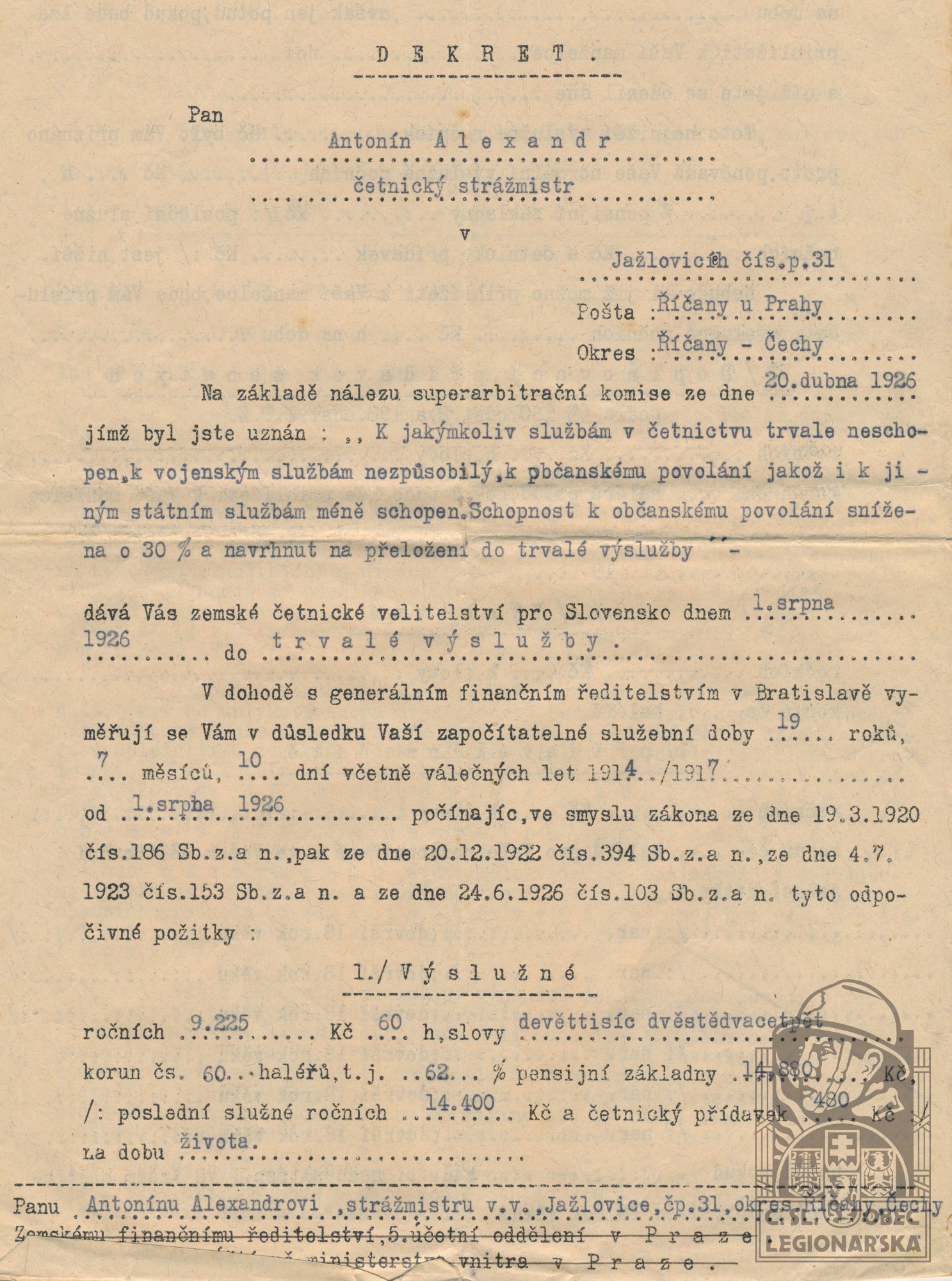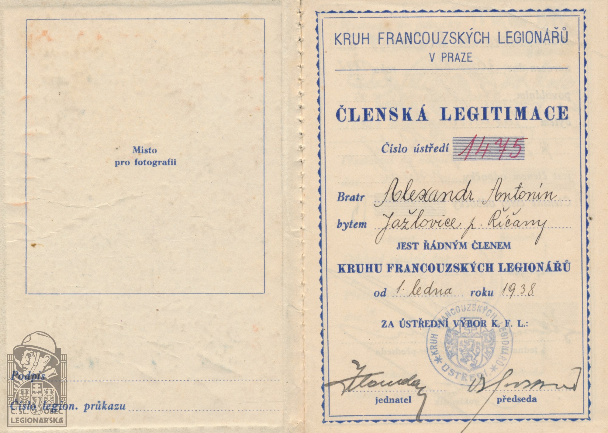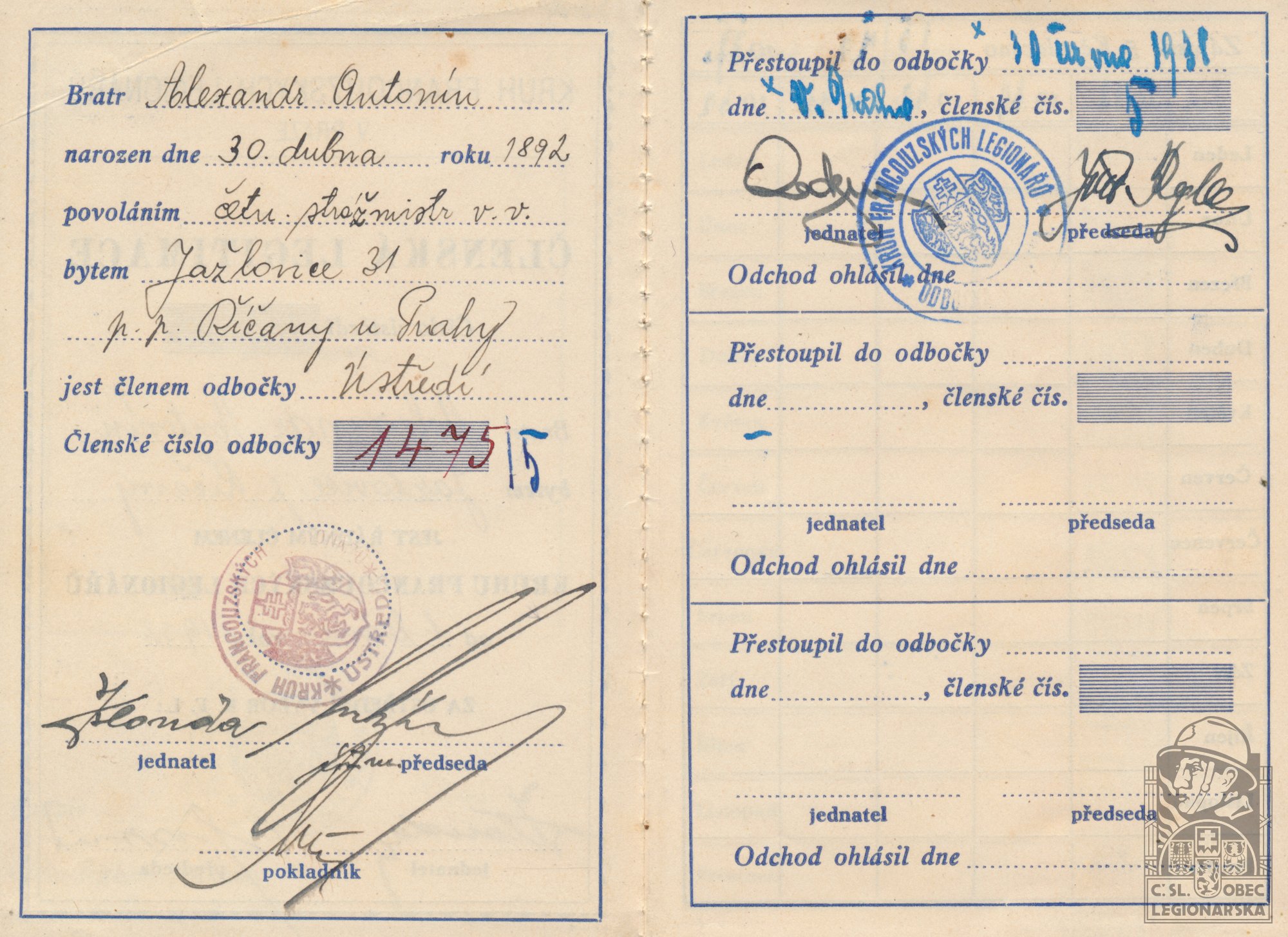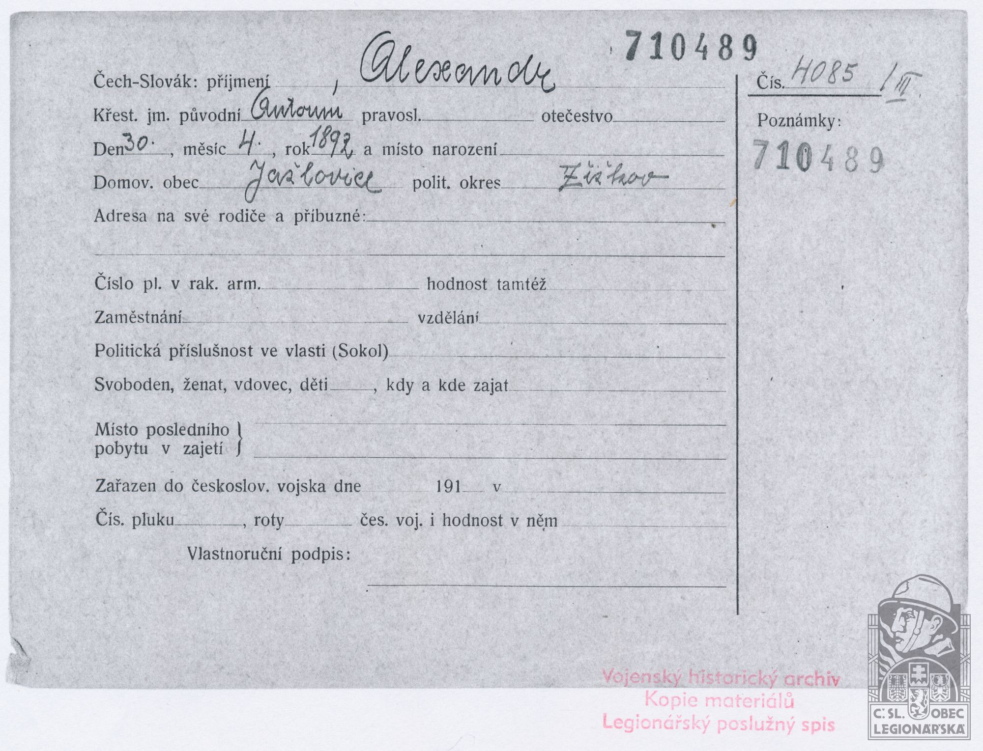 Zdroj informací: legionářský poslužný spis osobní karta legionáře