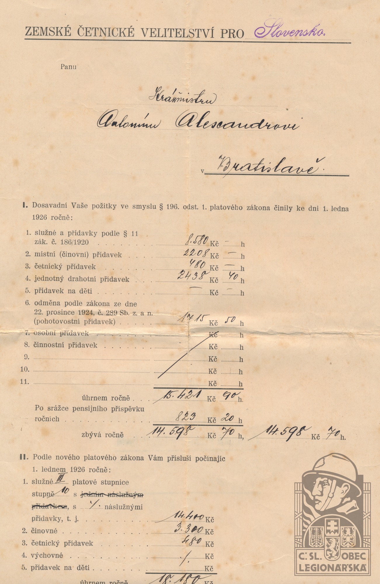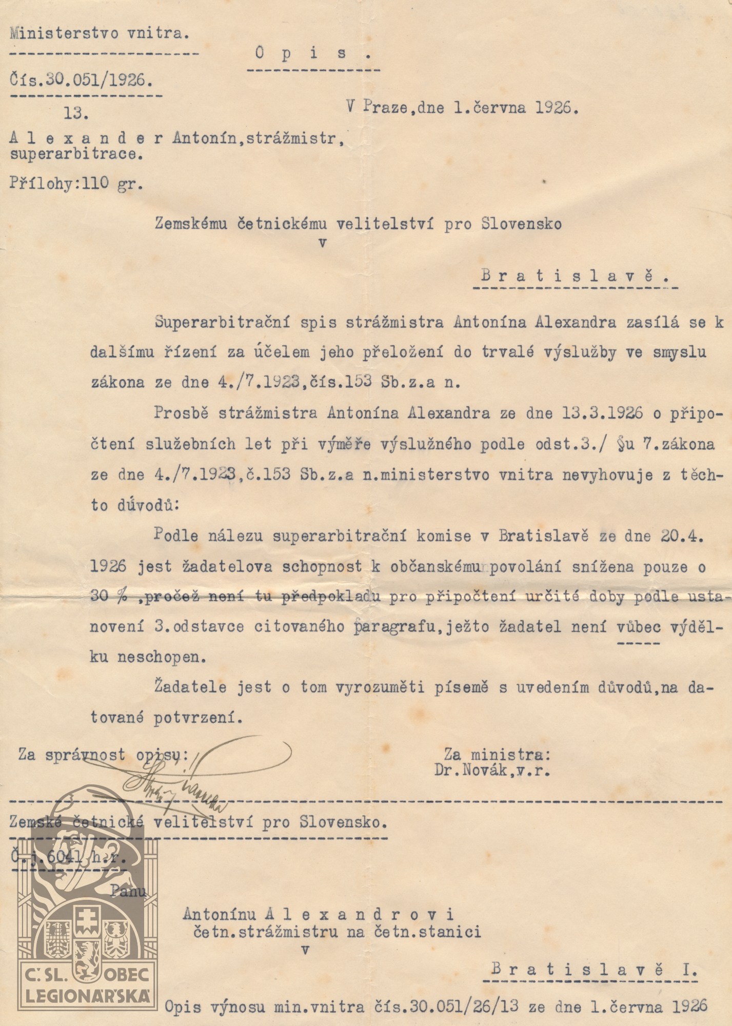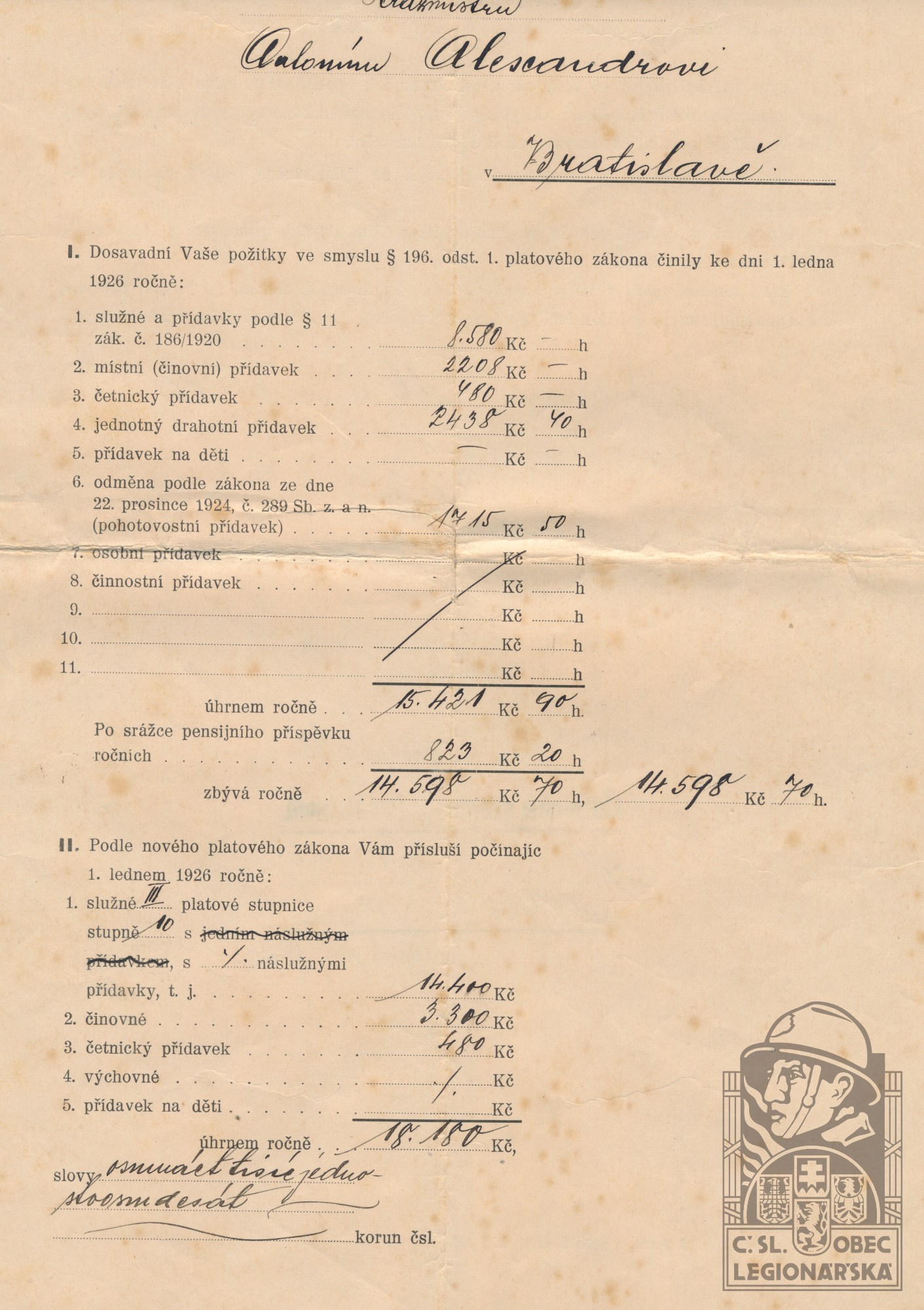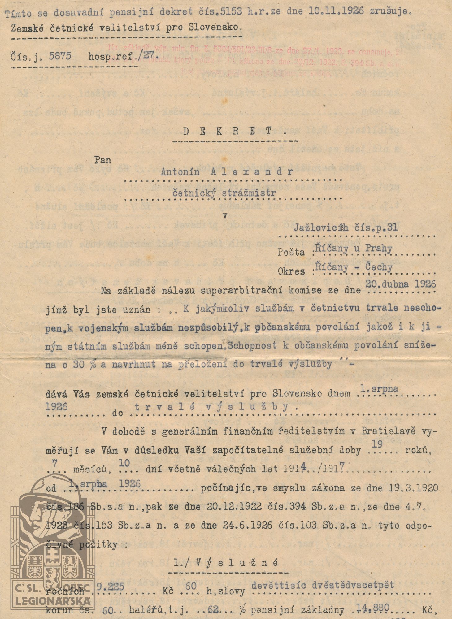 Zdroj informací: legionářský poslužný spis osobní karta legionáře