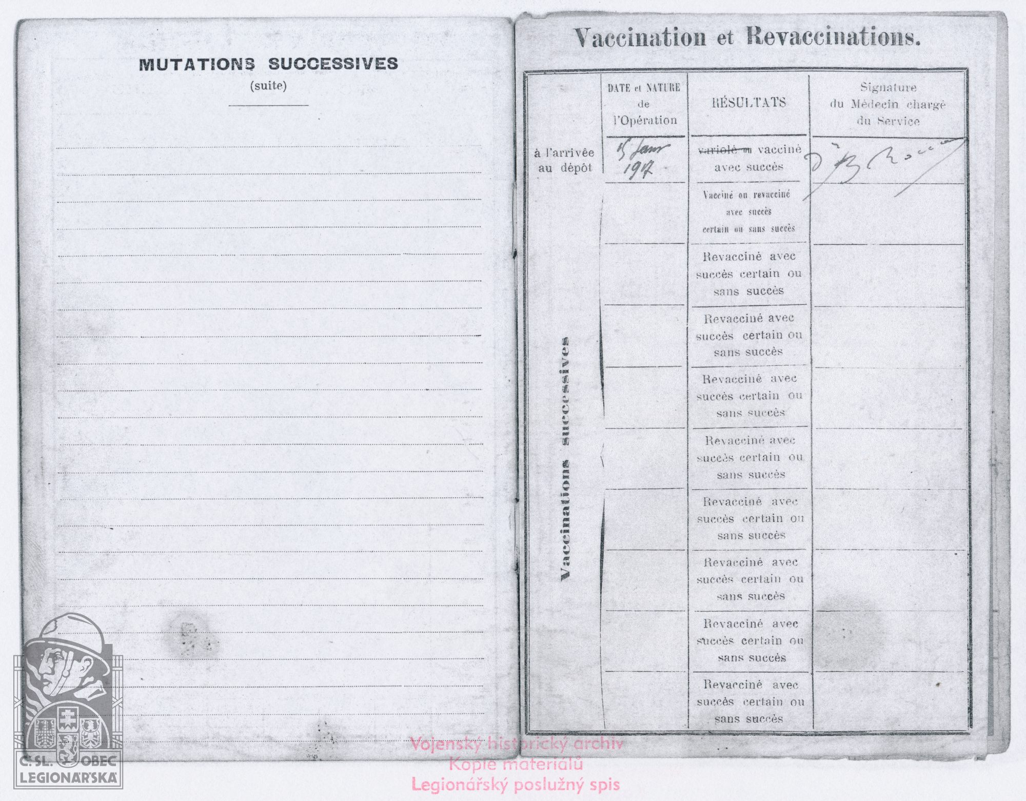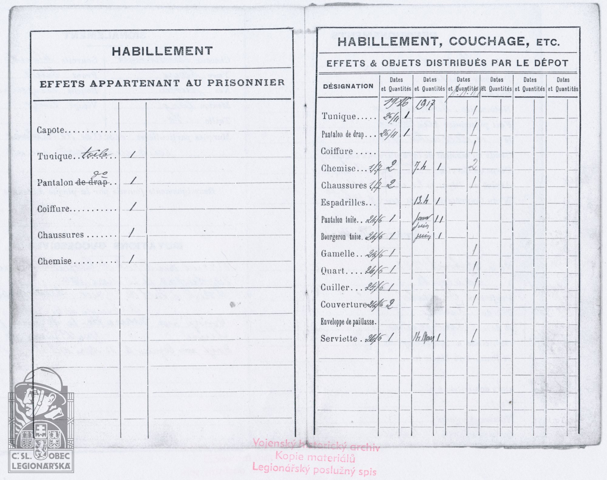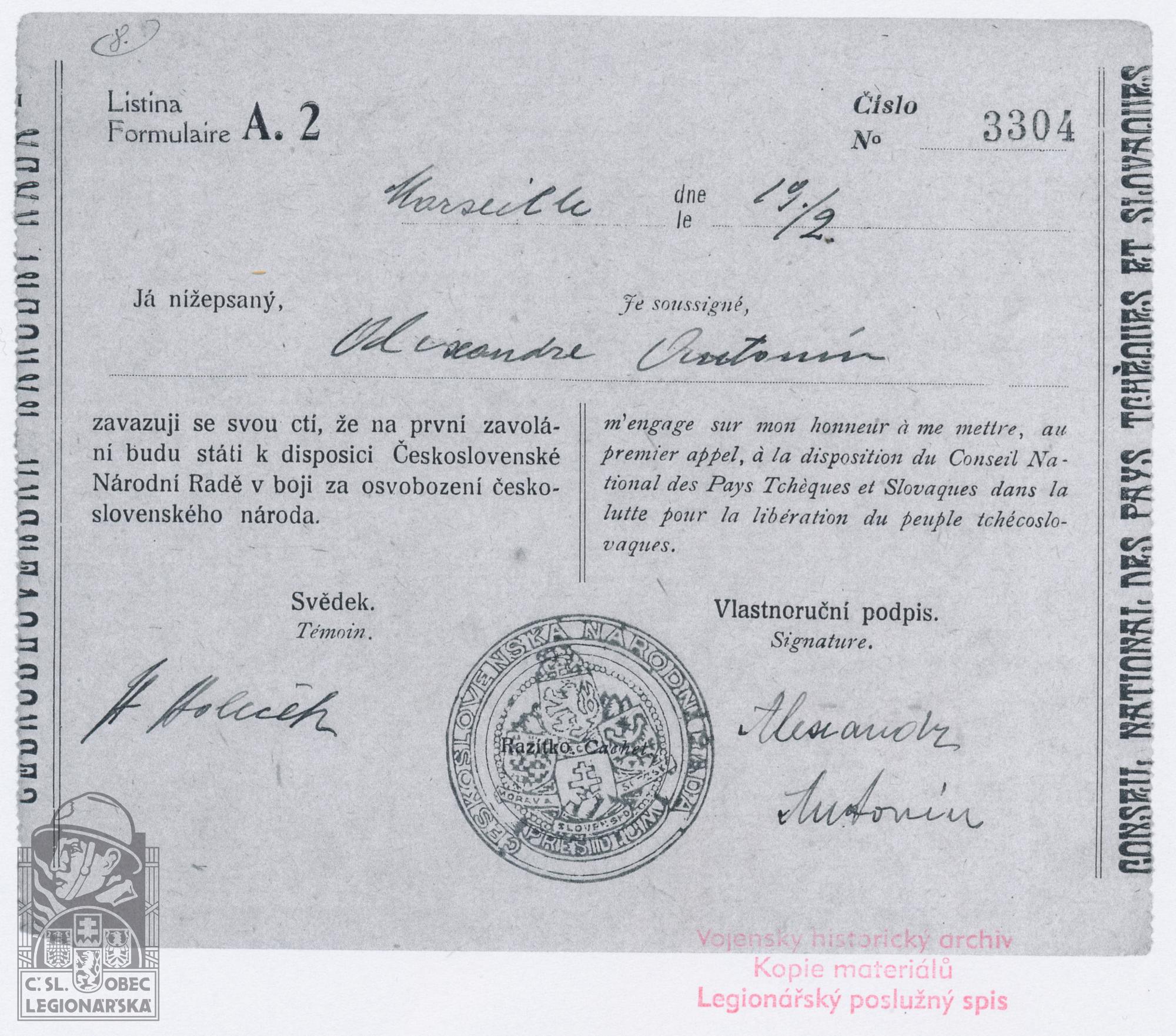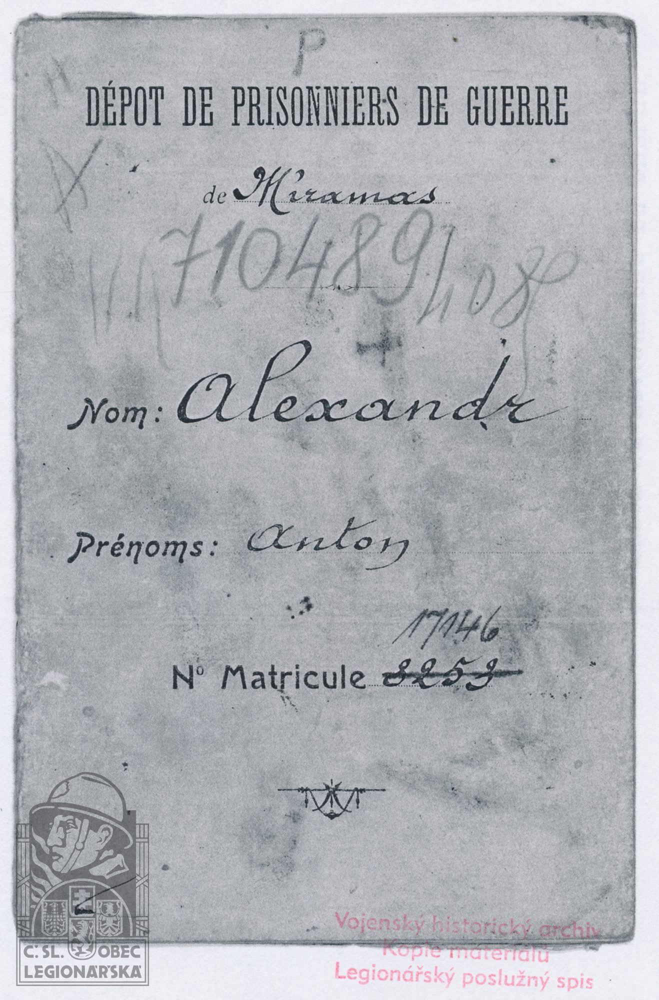 Jednotka v době zařazení:21.p.pl. ( Čs. legie v Francii )