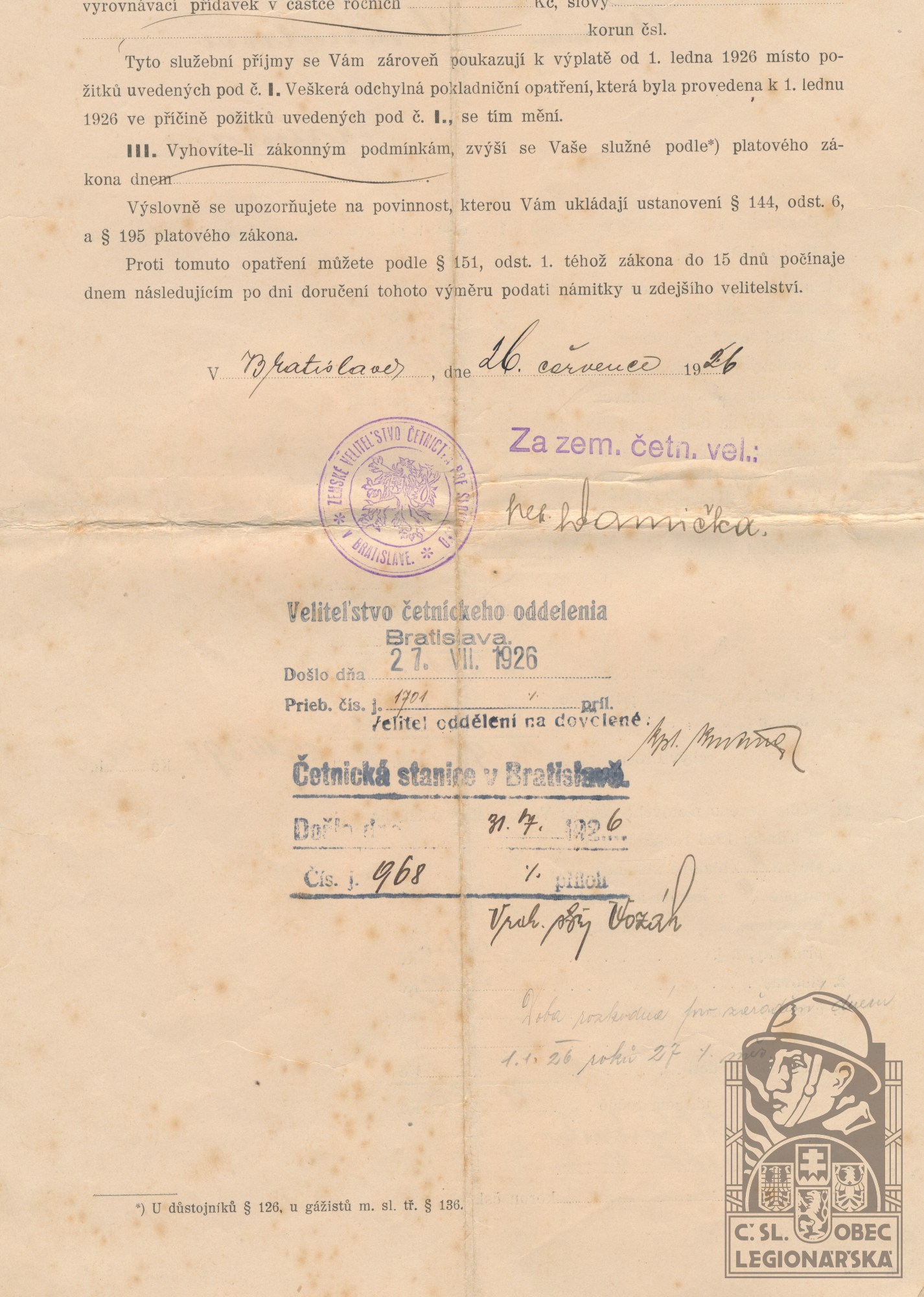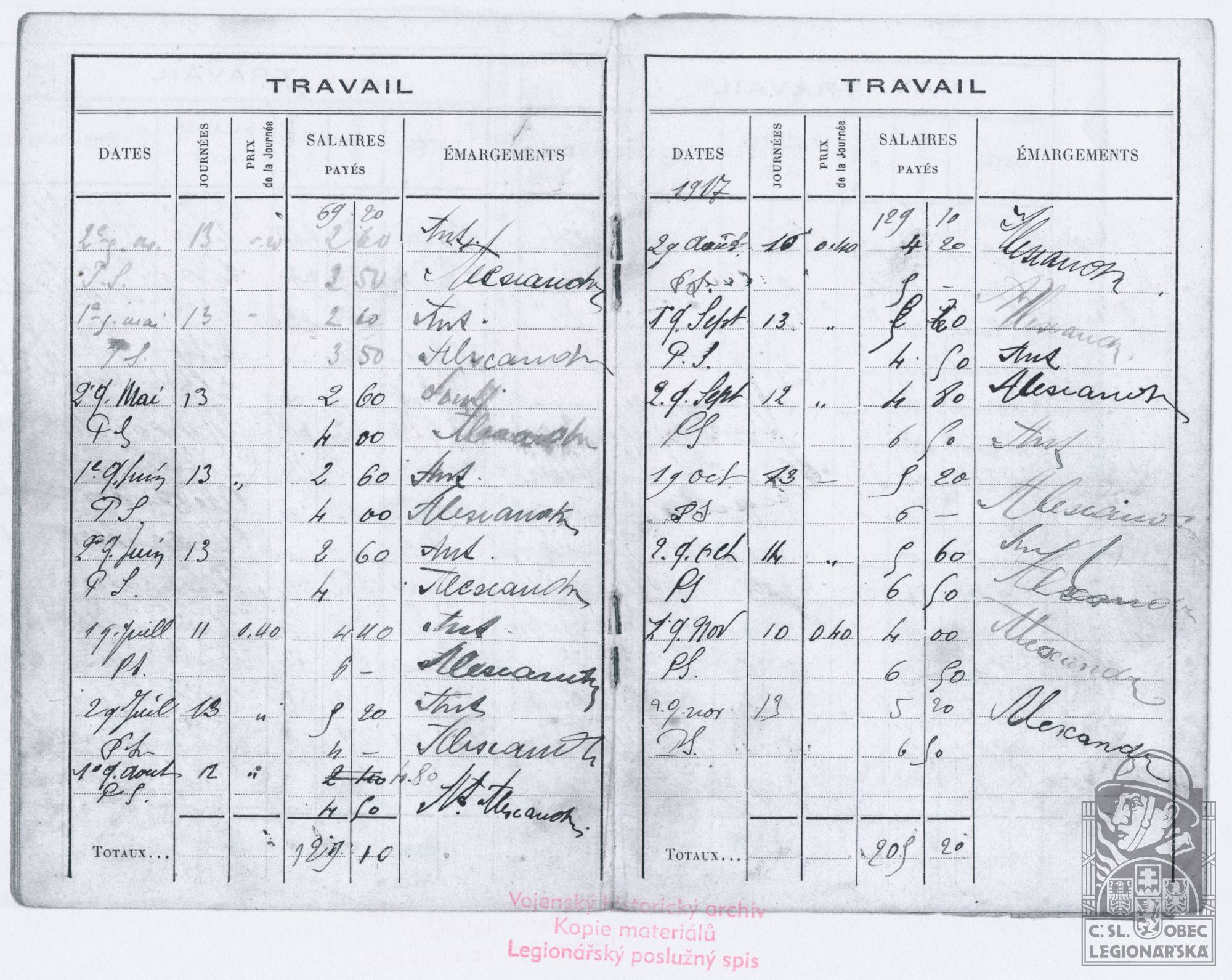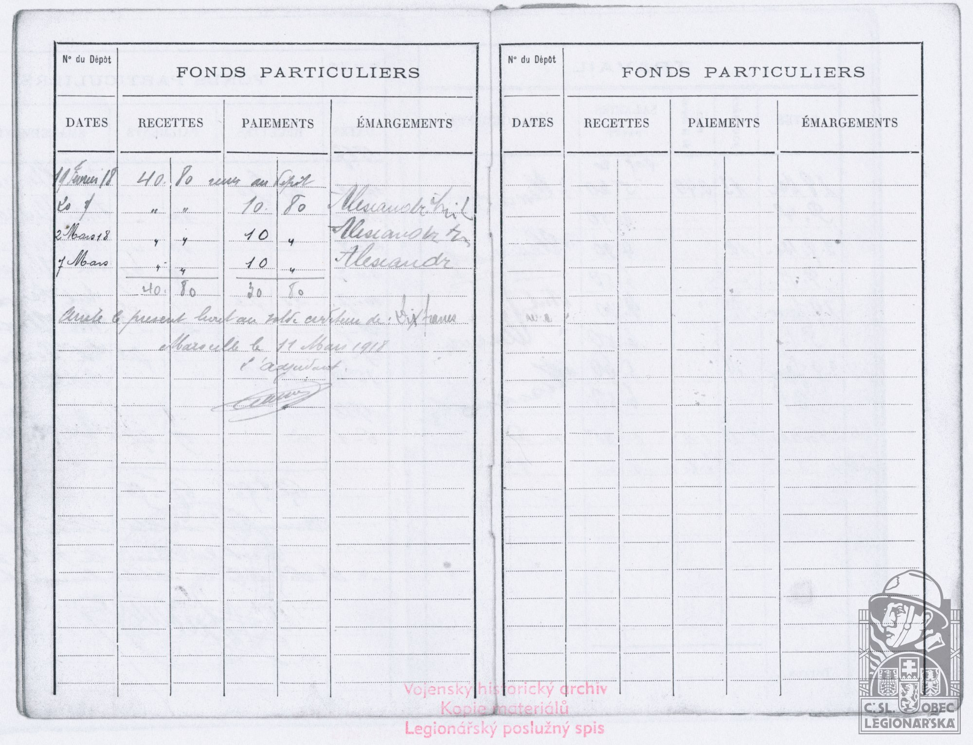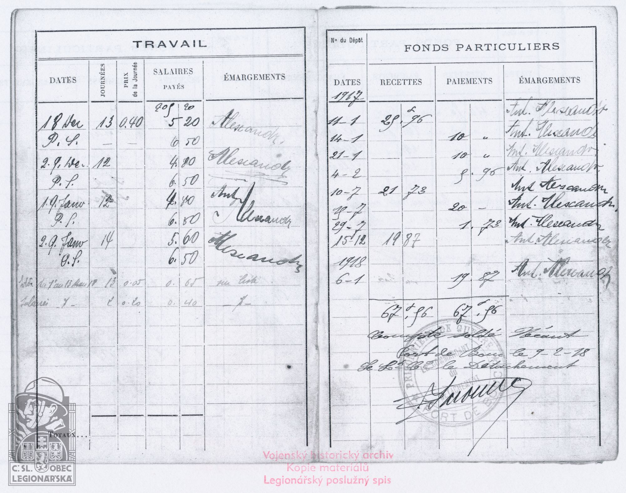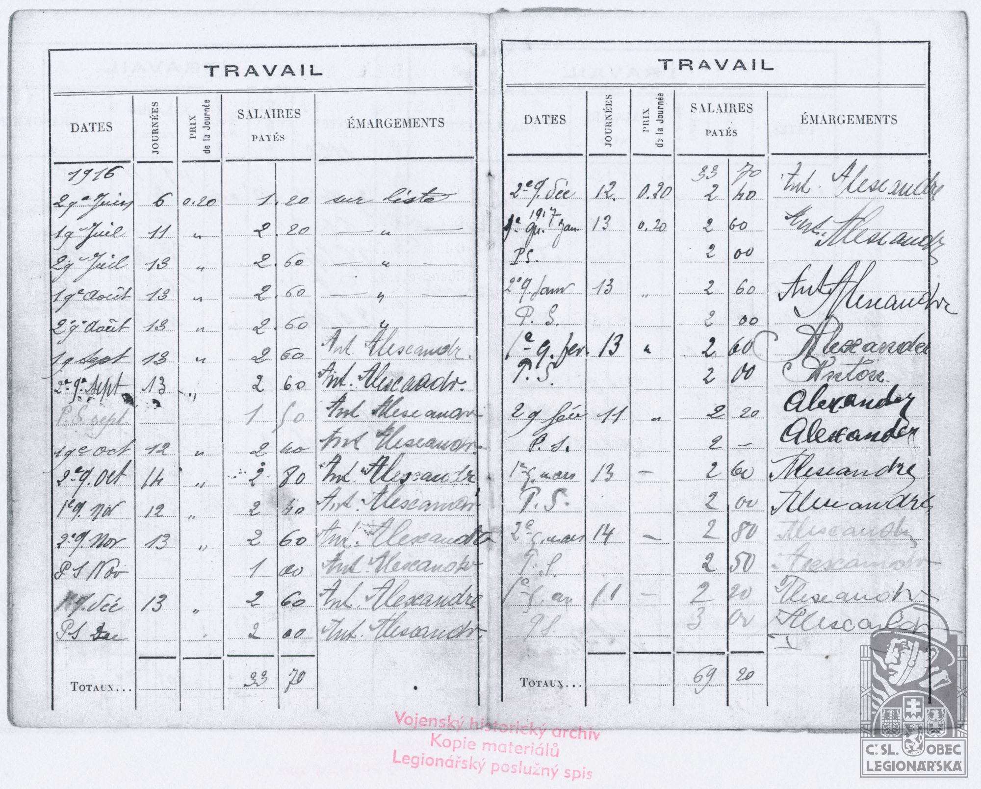 Jednotka v době zařazení:21.p.pl. ( Čs. legie v Francii )