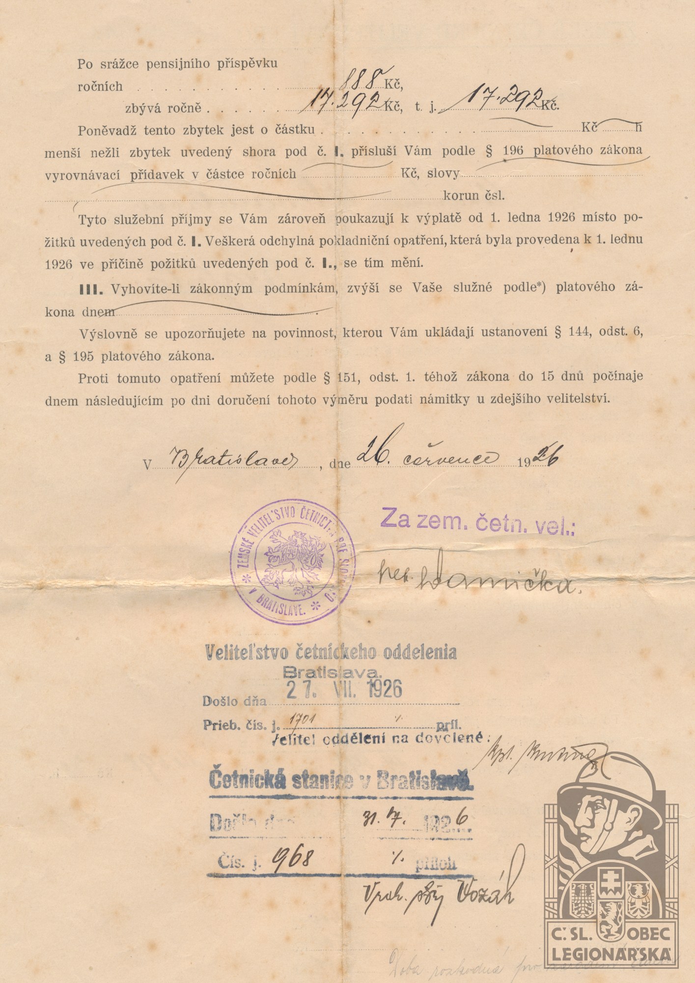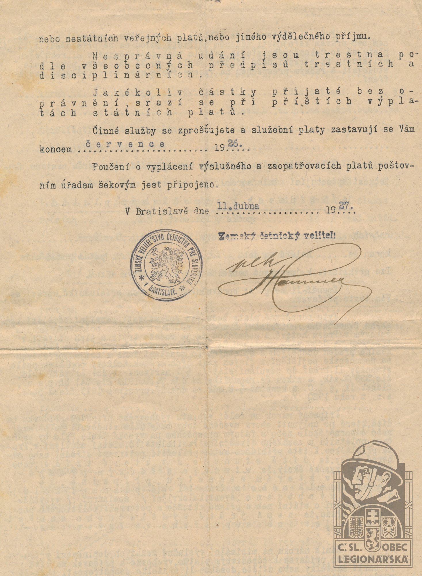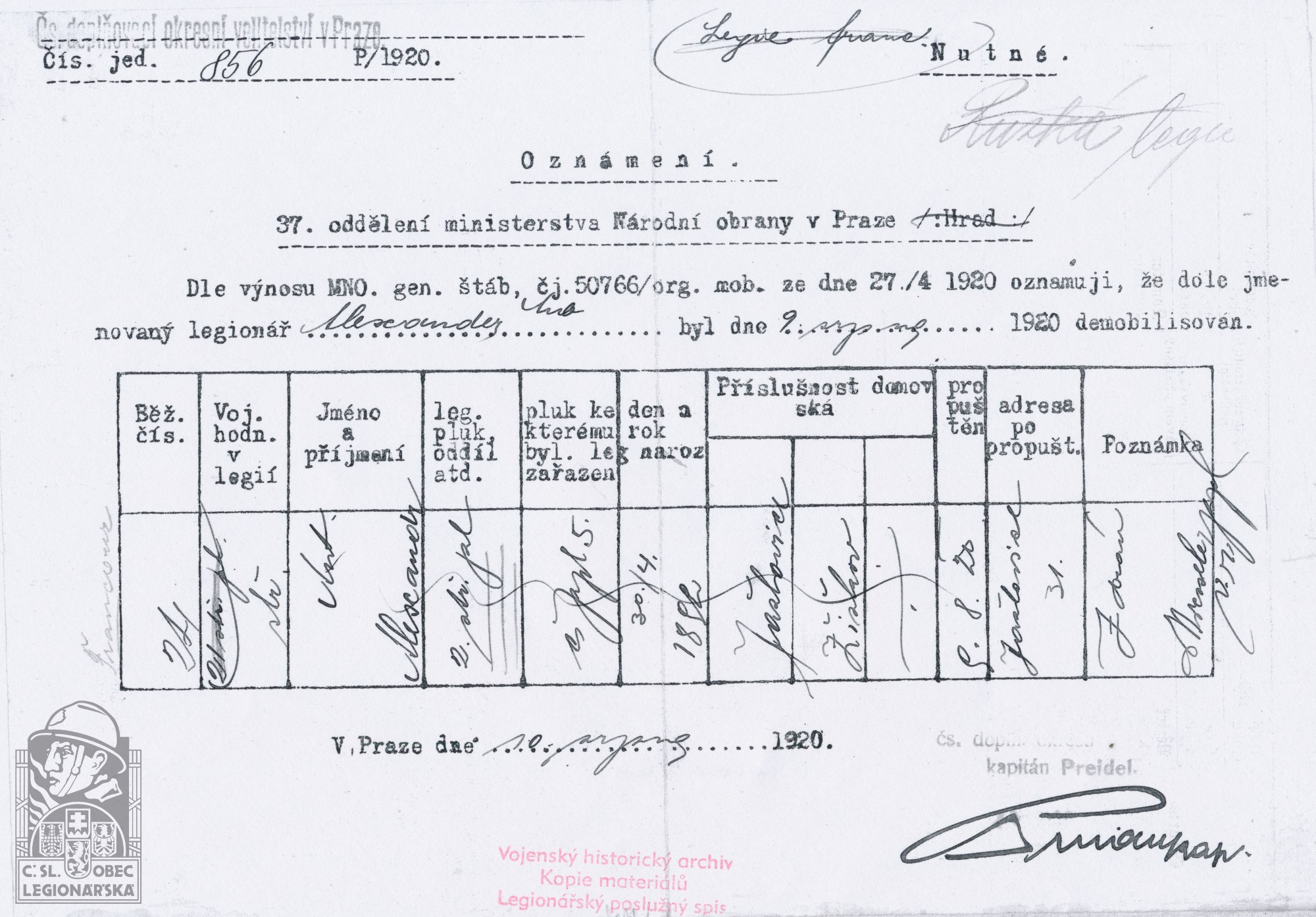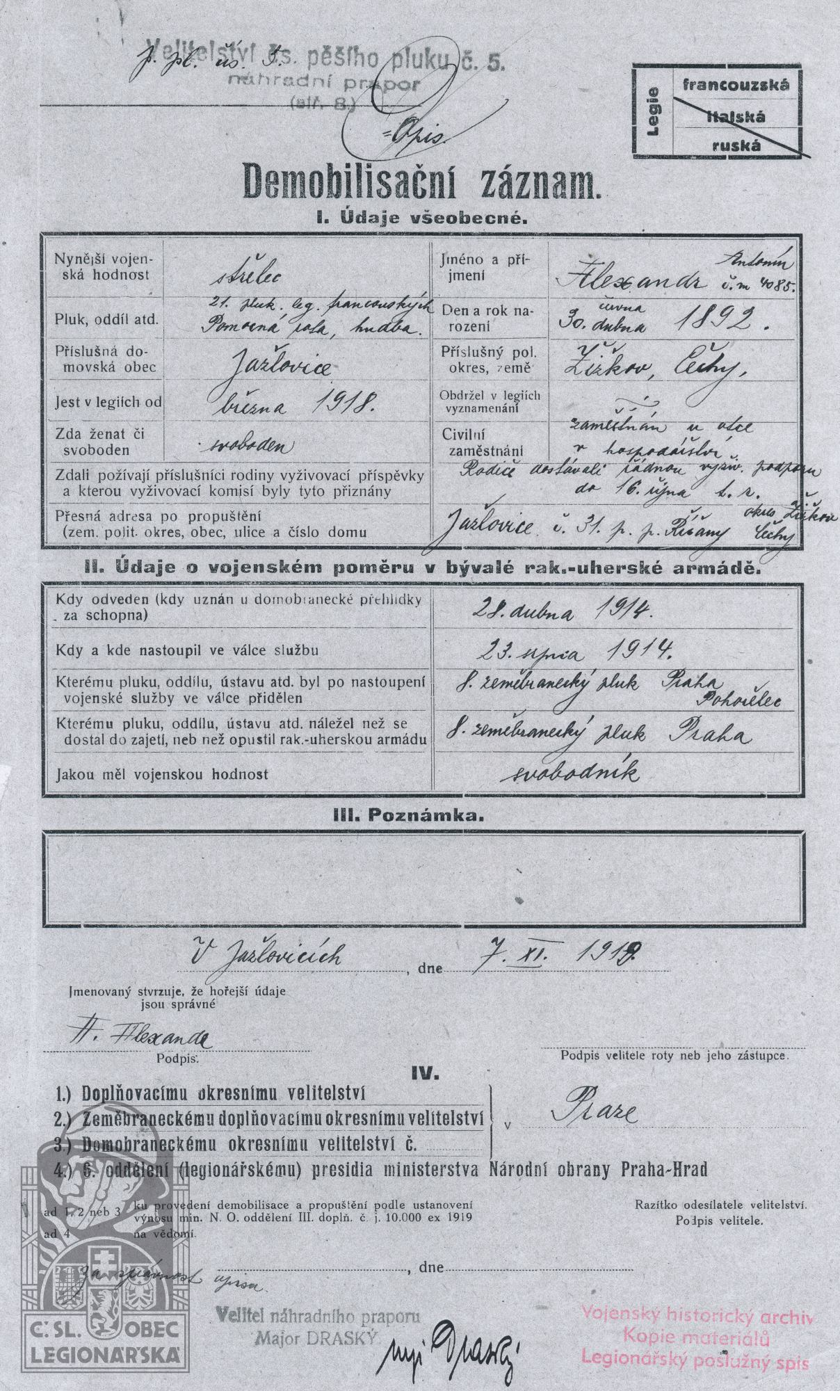 Konec v legiích:22.4.1919 ( Demobilizován )
