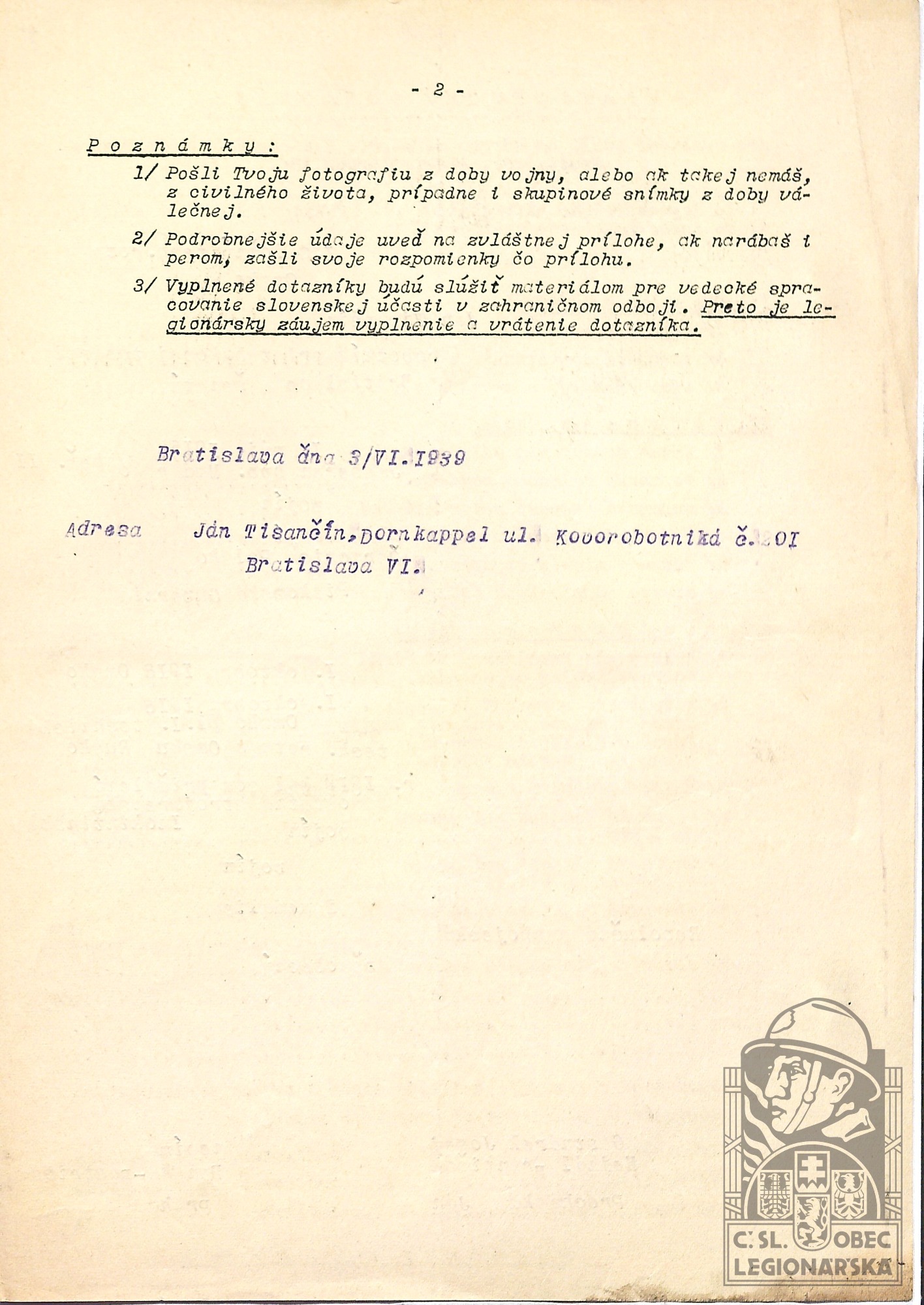 Zdroj informací: legionářský poslužný spis osobní karta legionáře