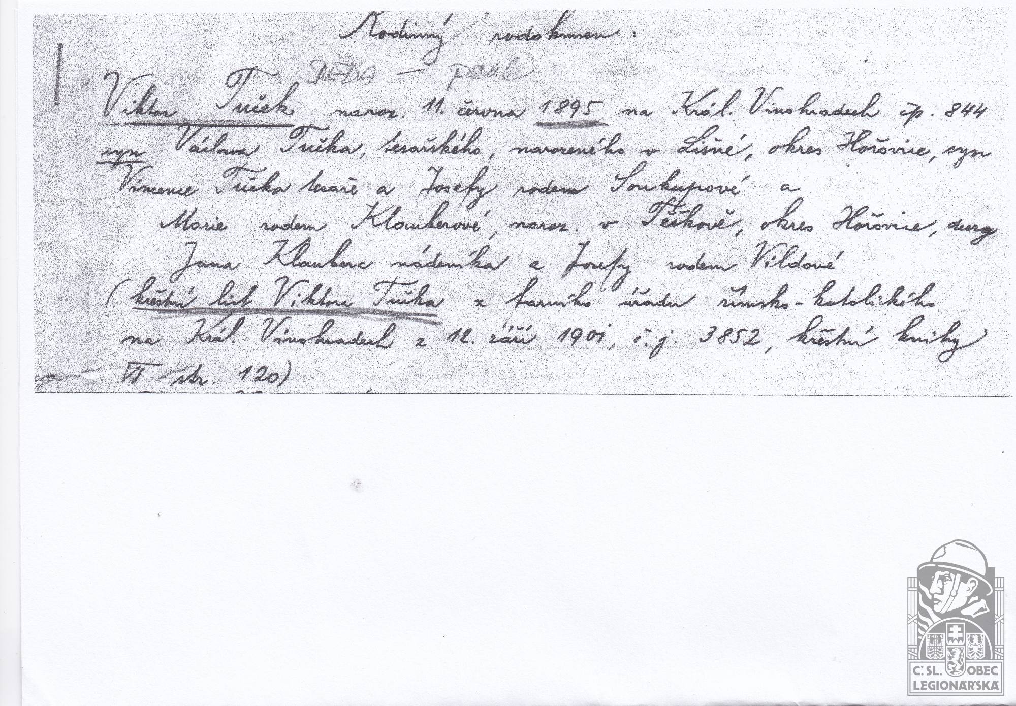 Zdroj informací: legionářský poslužný spis osobní karta legionáře