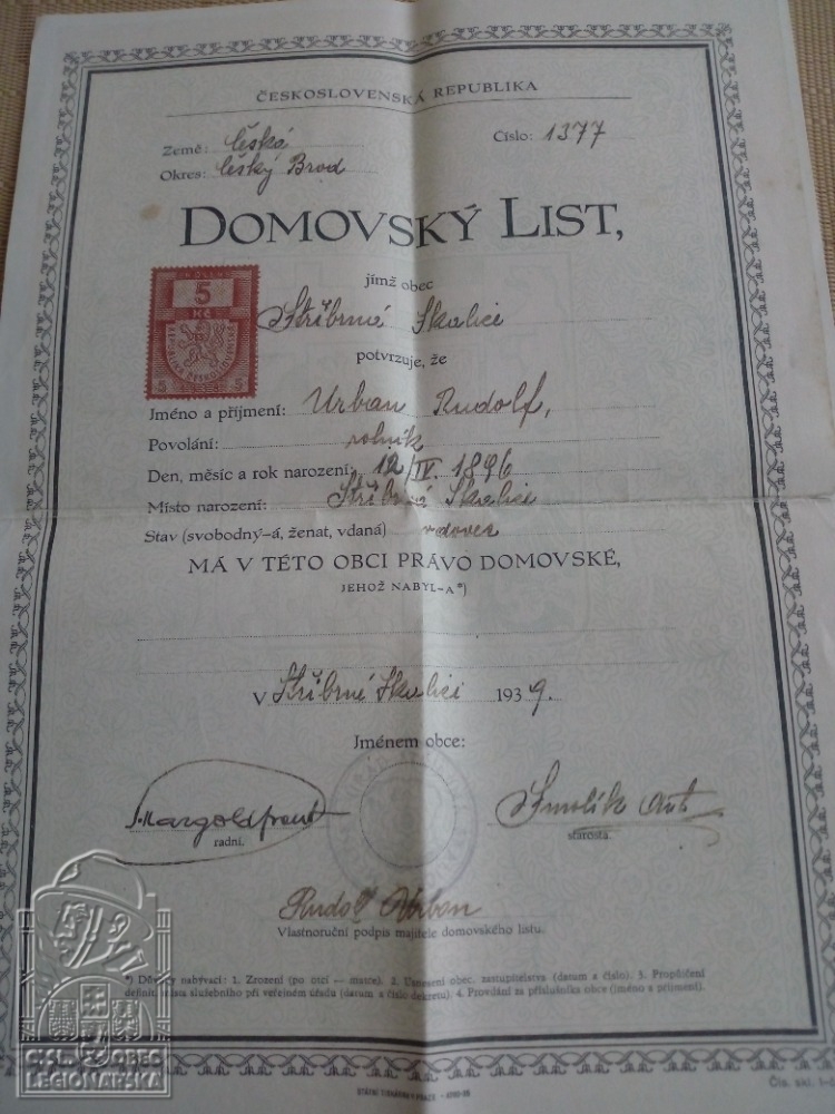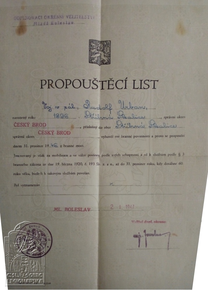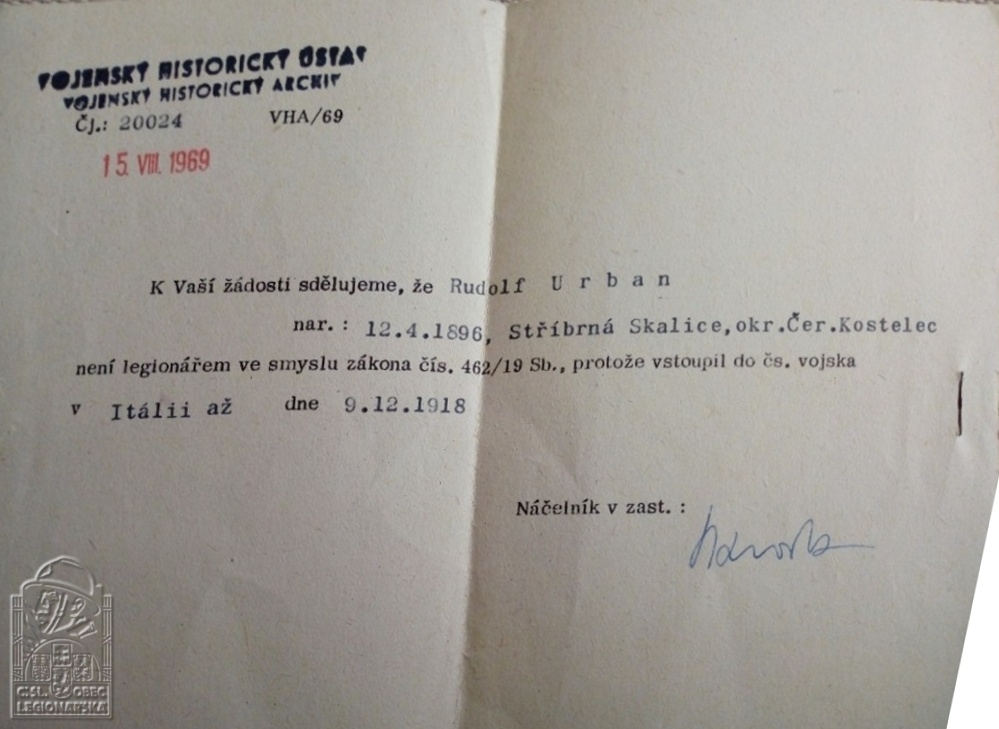 dokumenty spojené s osobou legionáře