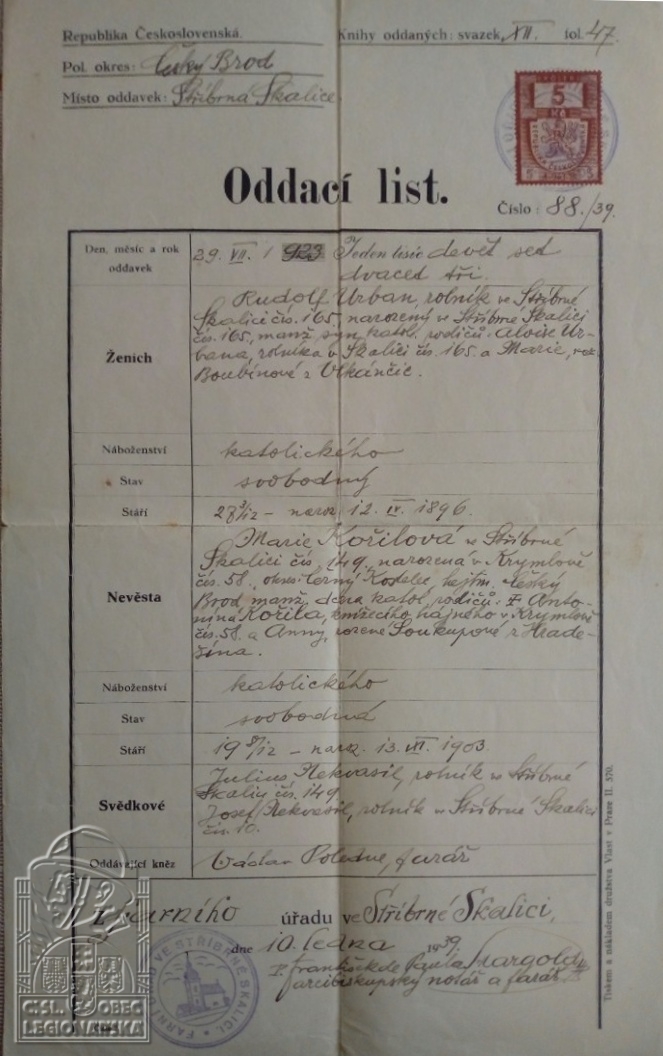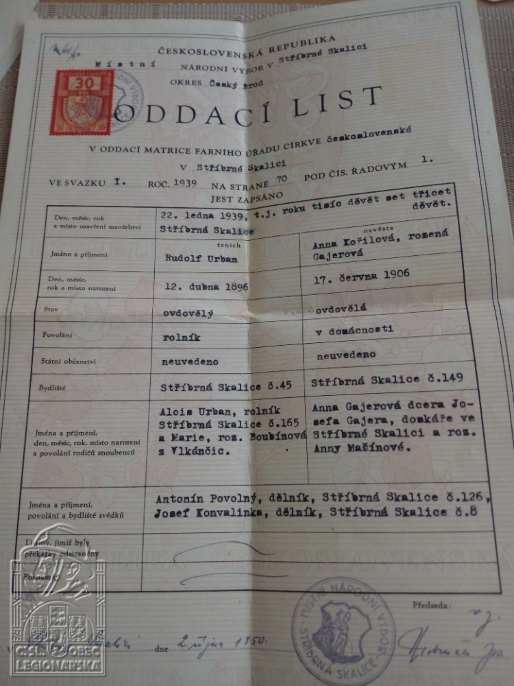 Oddací list (123611.607)