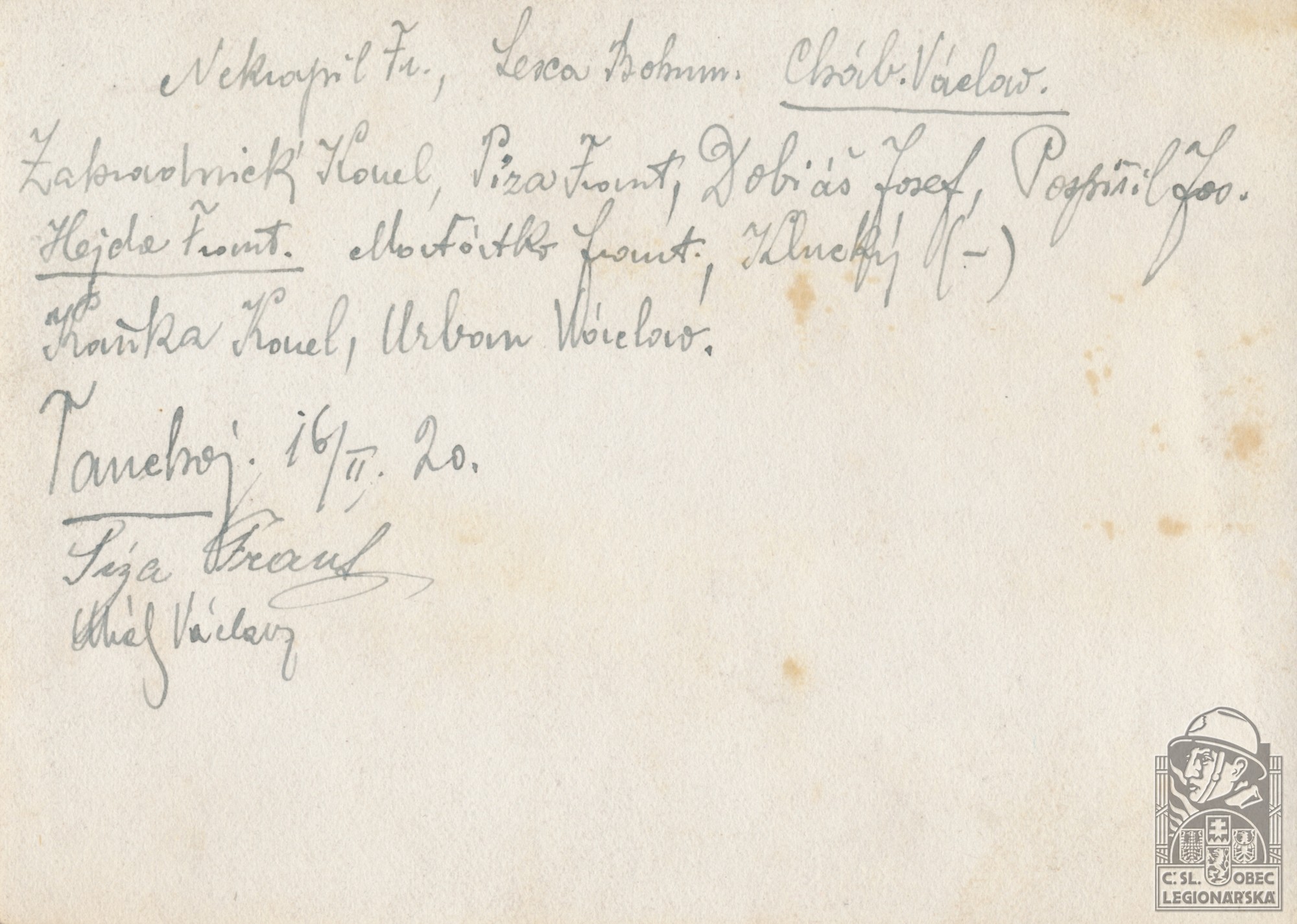 Zdroj informací: legionářský poslužný spis osobní karta legionáře