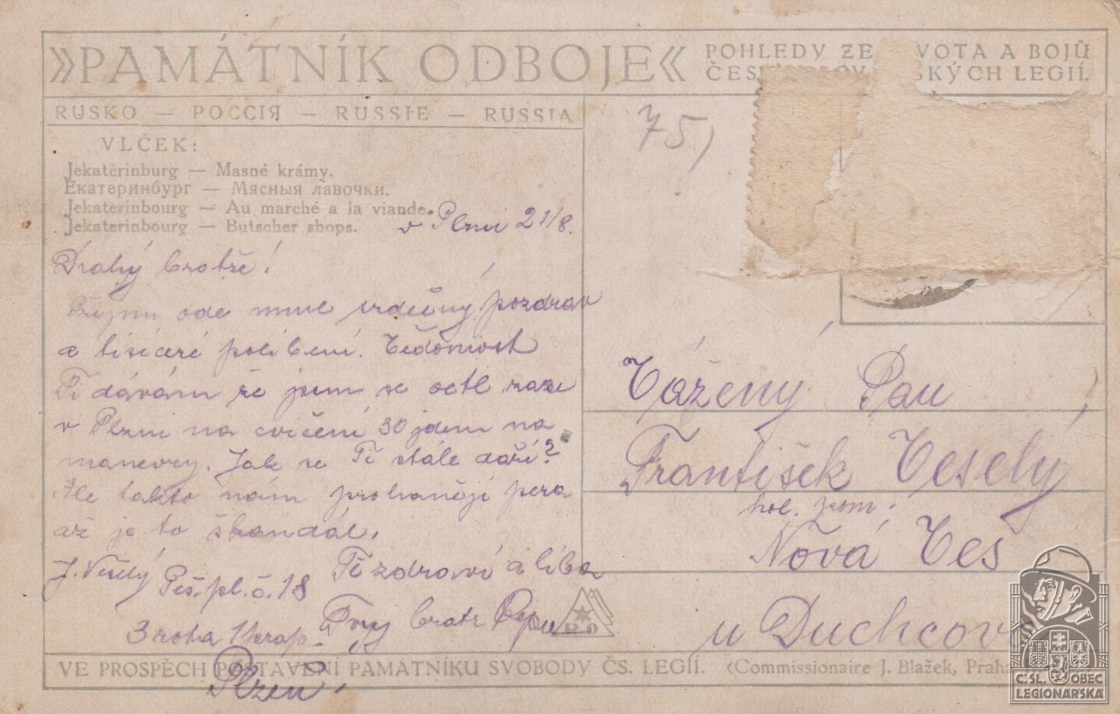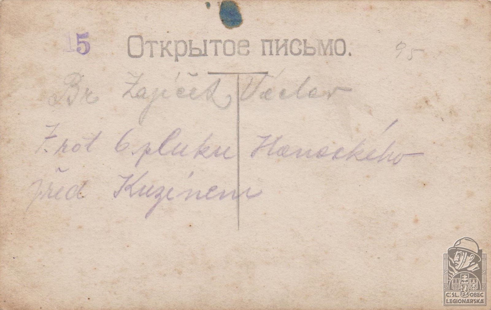 Jednotka v době zařazení:7.stř.pl. ( Čs. legie v Rusku )