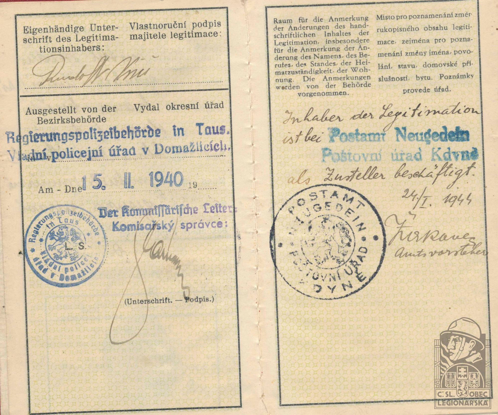 dokumenty spojené s osobou legionáře