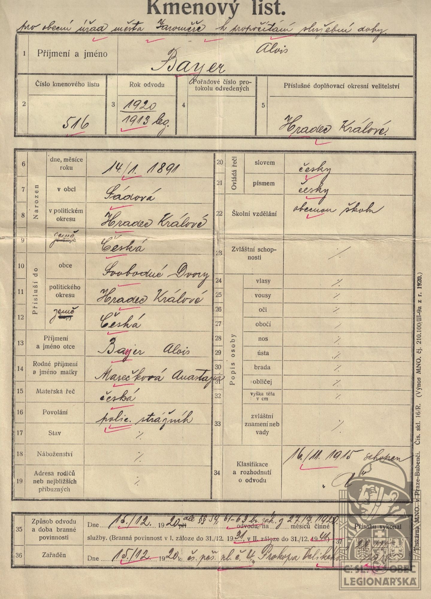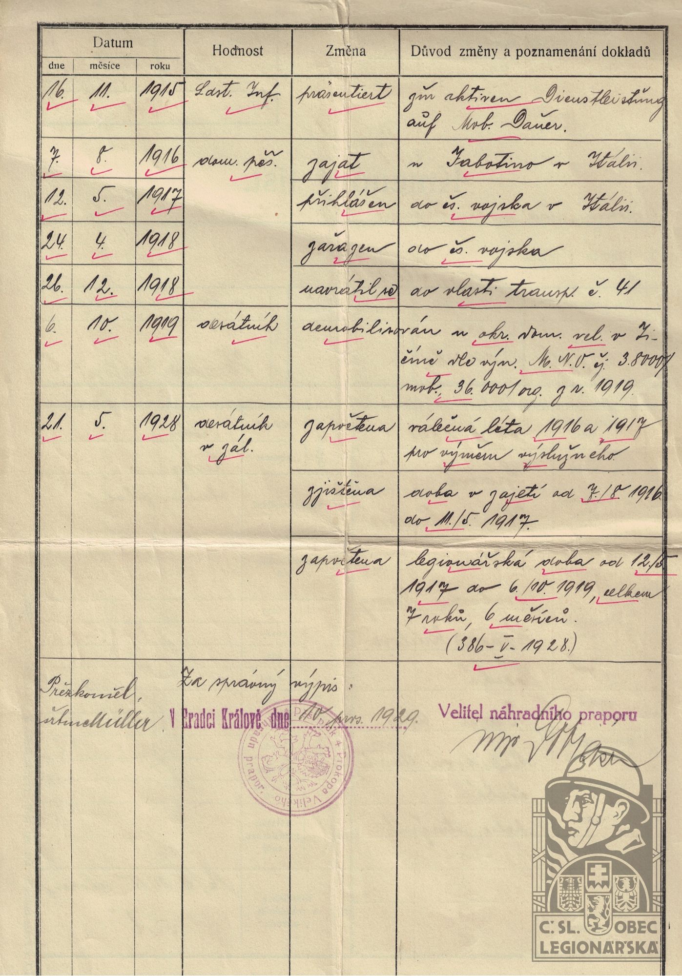 Zdroj informací: legionářský poslužný spis