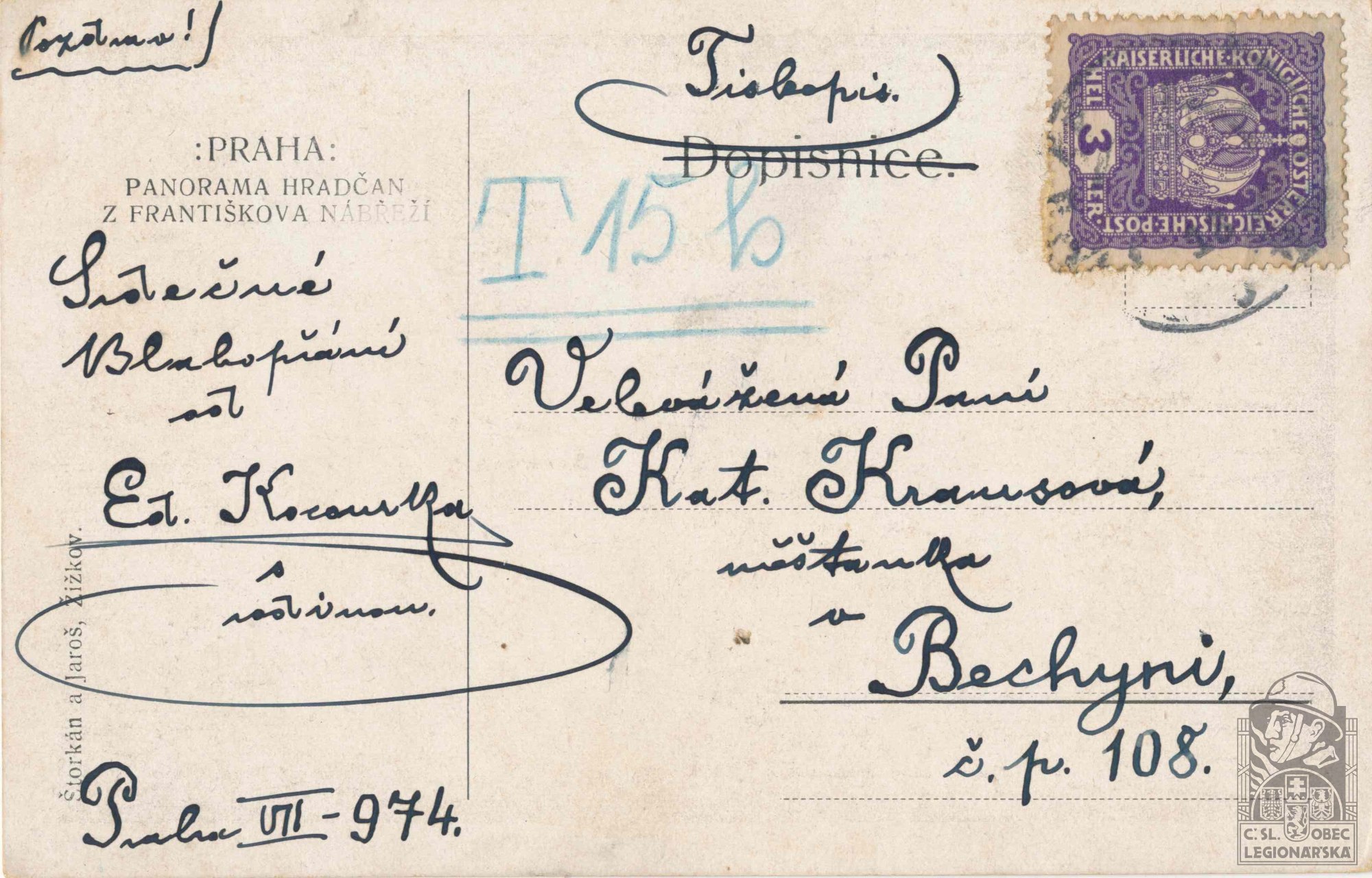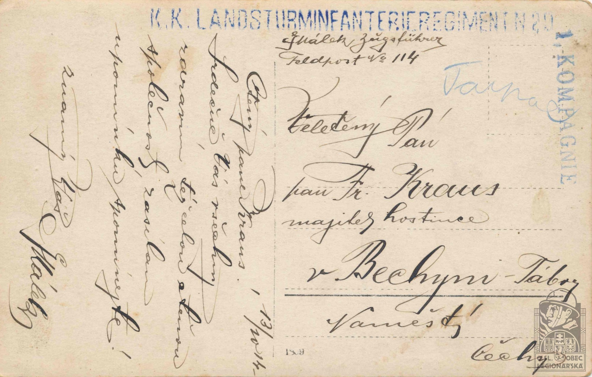 Jednotka v době zařazení:1.sam.tech.rota ( Čs. legie v Rusku )