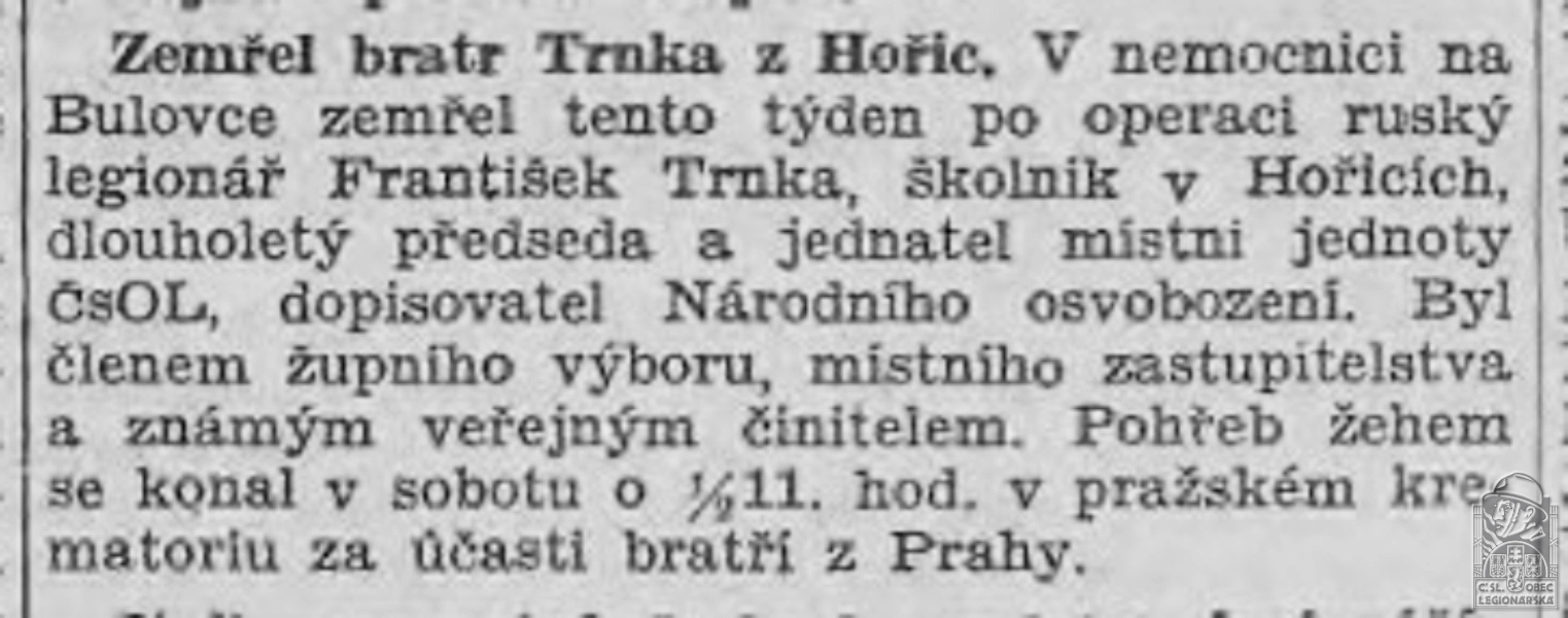 Legionářska organizace:ČsOL - Hořice (předseda; jednatel)