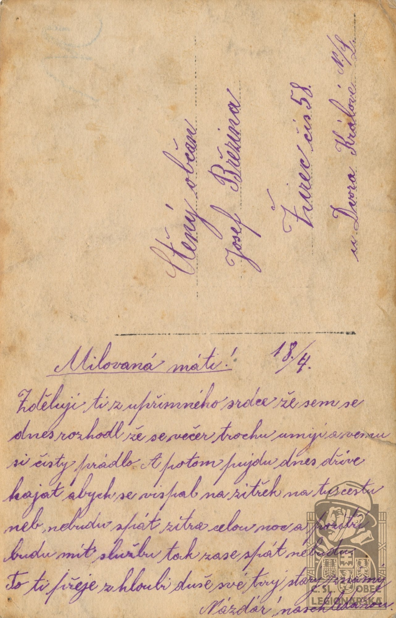 Jednotka v době zařazení:34.p.pl. ( Čs. legie v Itálii )