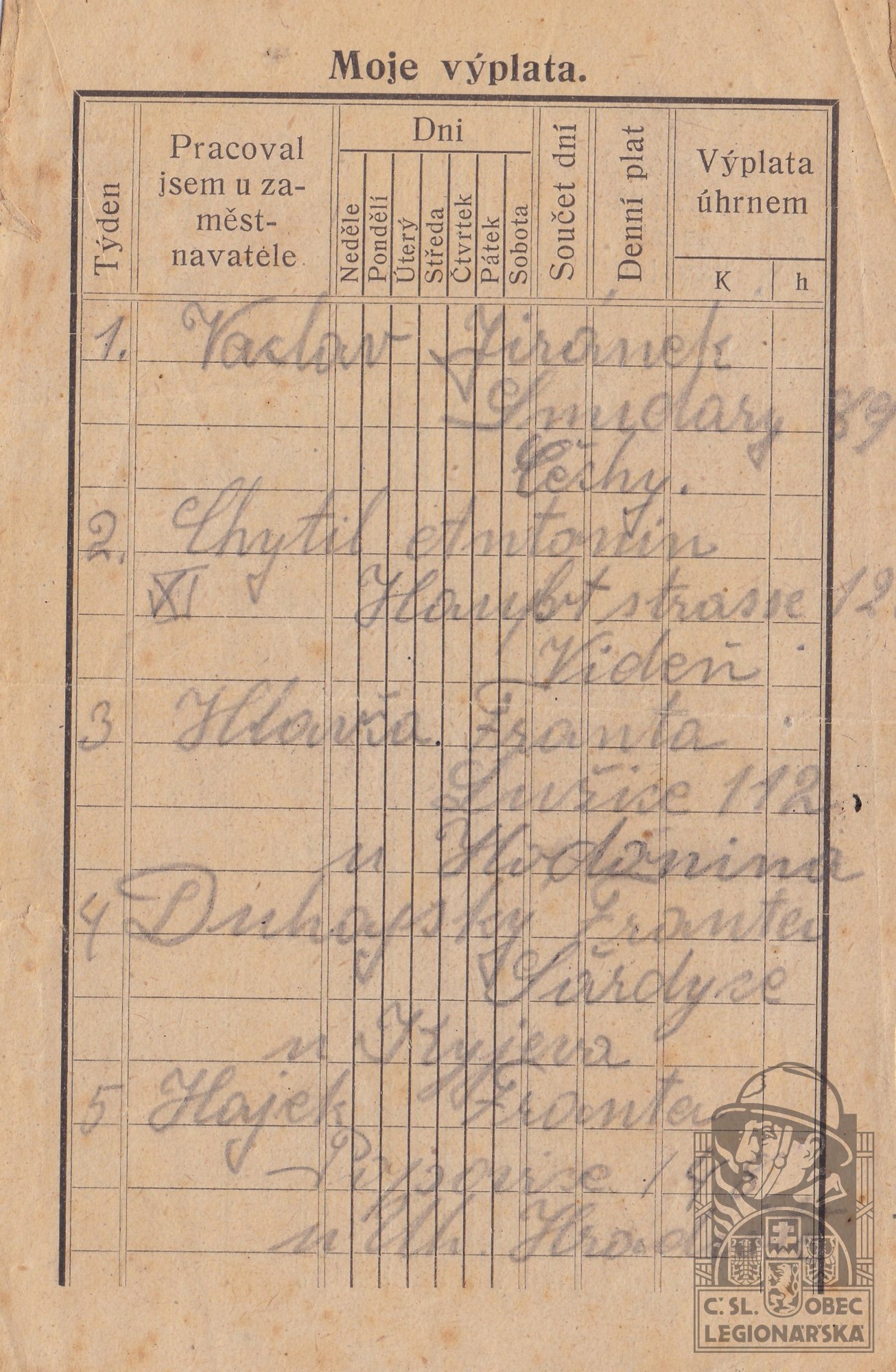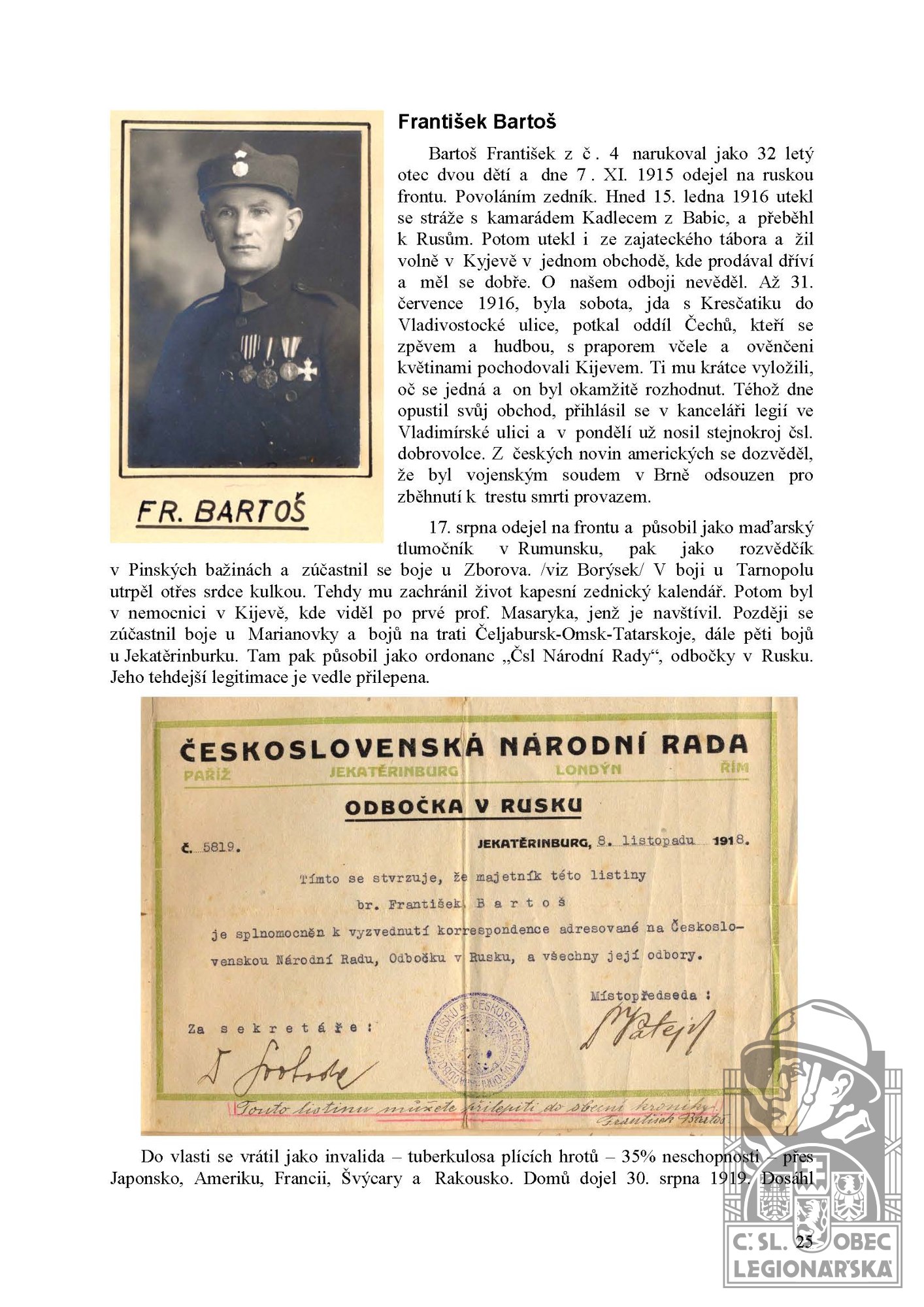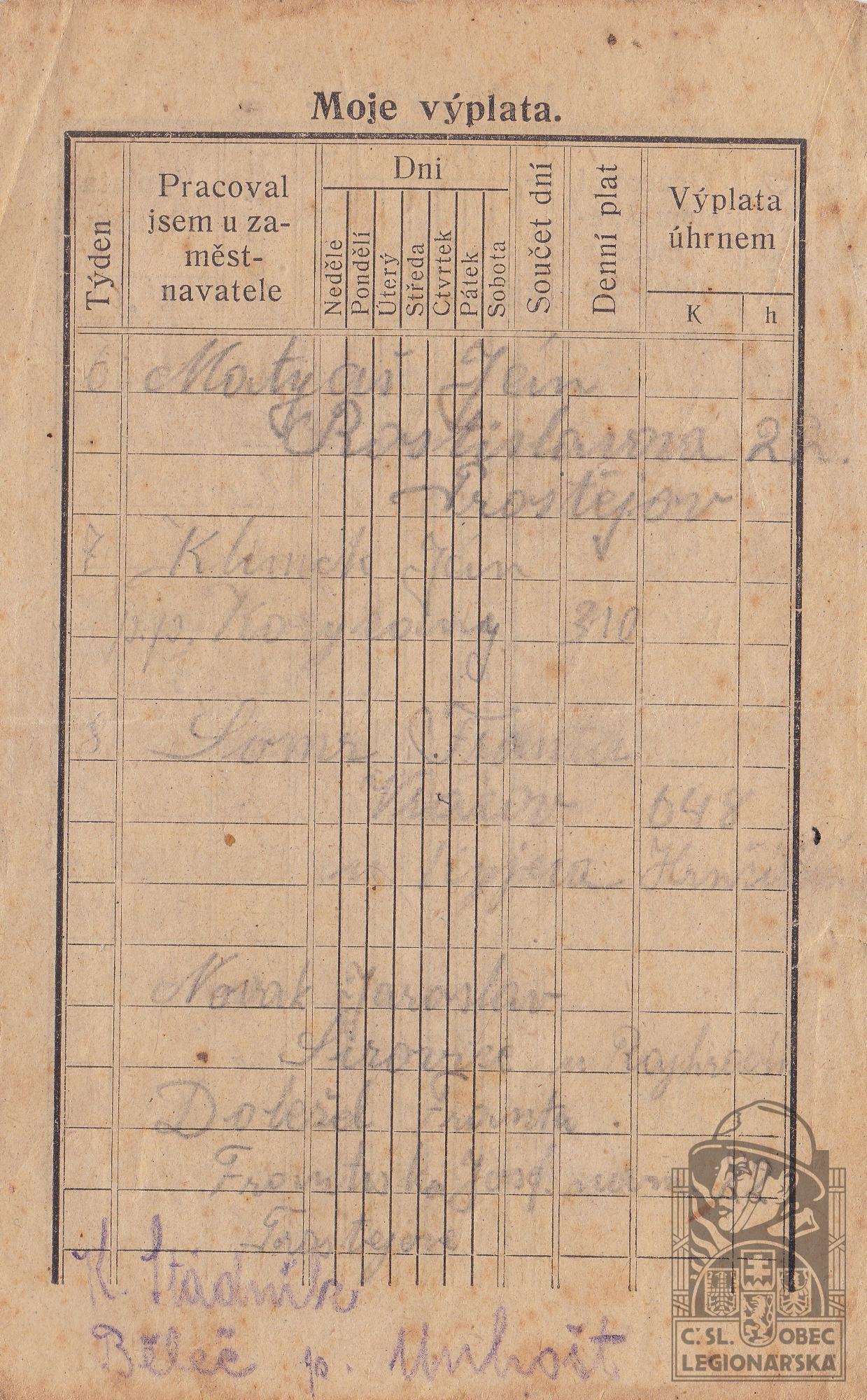 Zdroj informací: legionářský poslužný spis