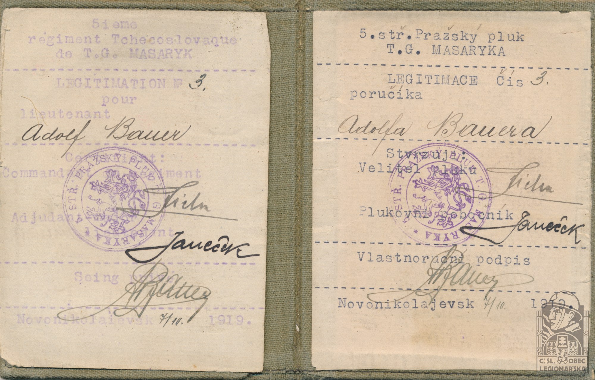 dokumenty spojené s osobou legionáře