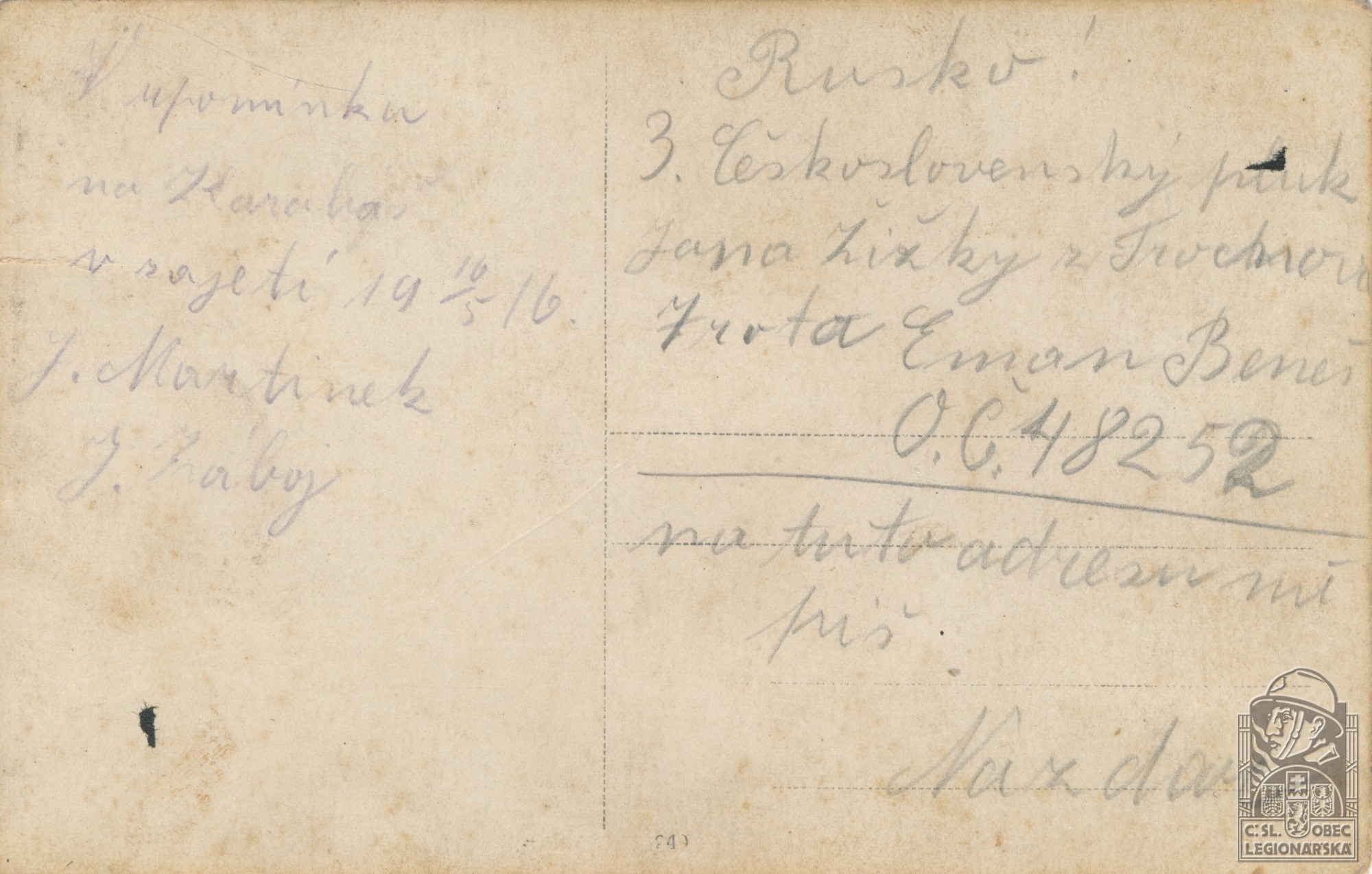 Jednotka v době zařazení:3.stř.pl. ( Čs. legie v Rusku )