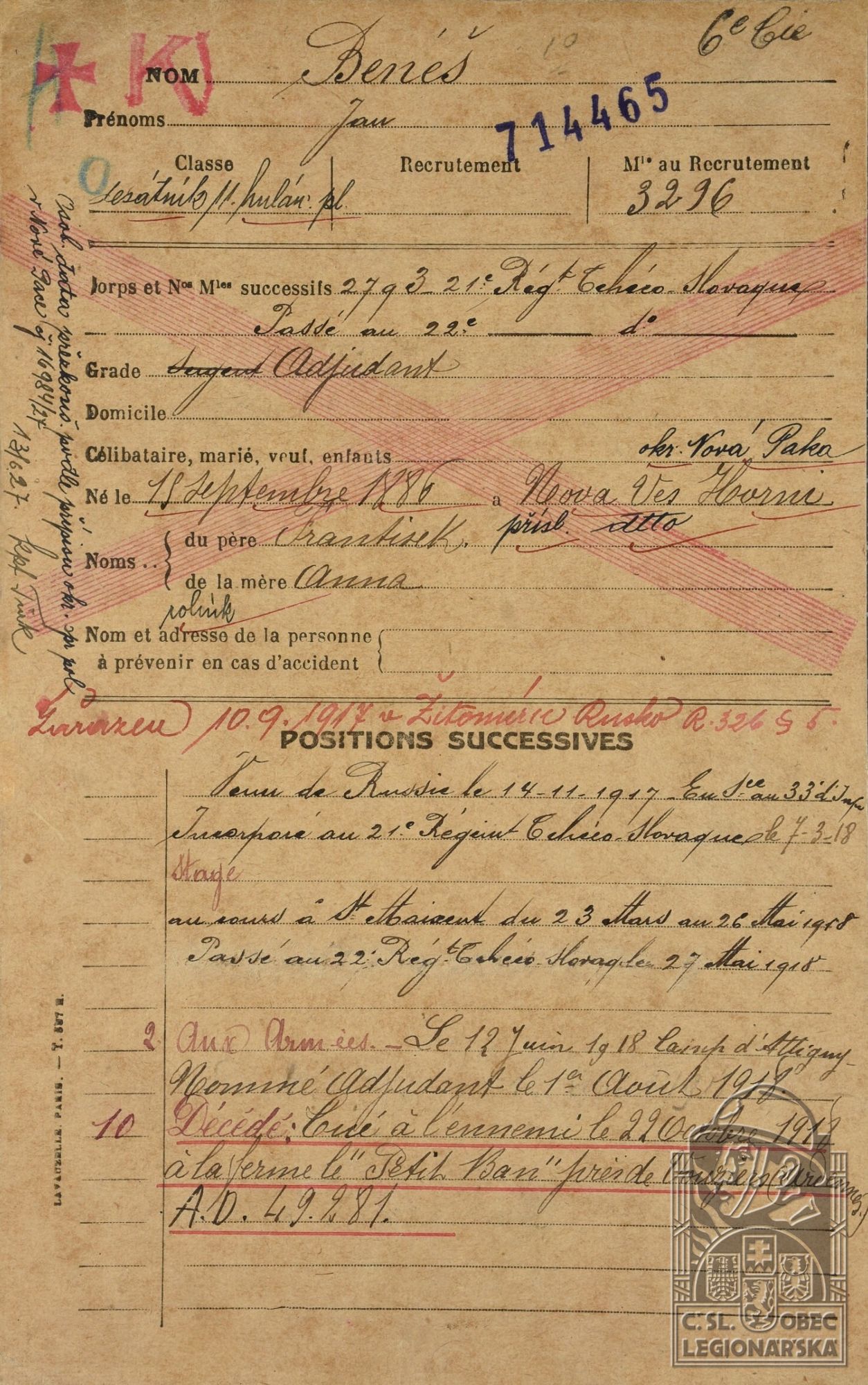 Konec v legiích:22.10.1918 ( Padl v boji )