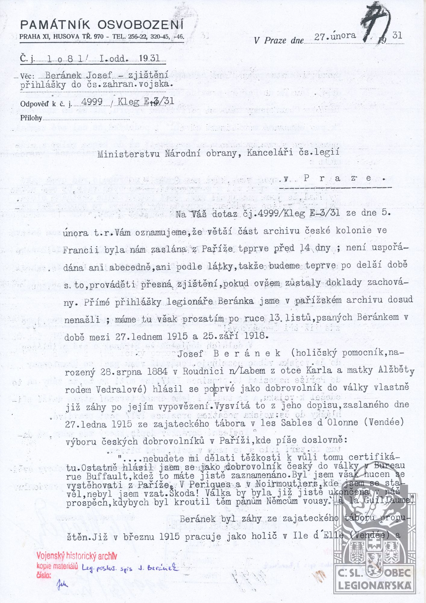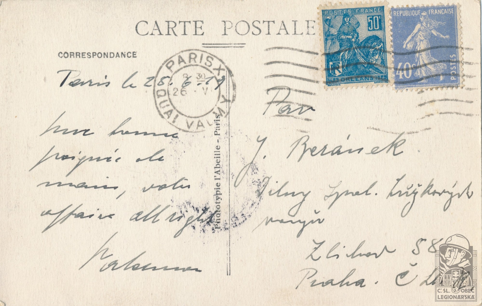 Jednotka v době zařazení:21.p.pl. ( Čs. legie v Francii )