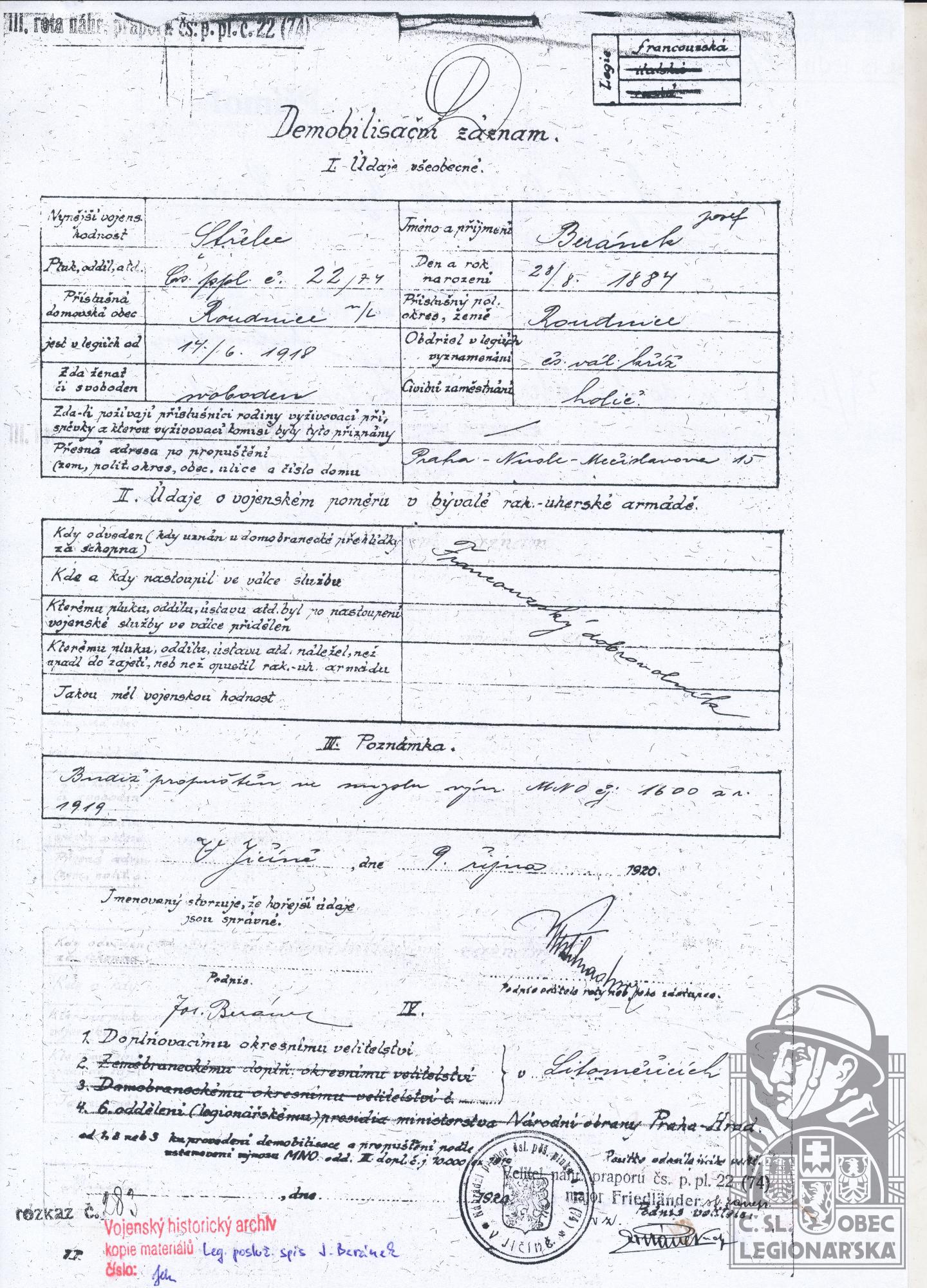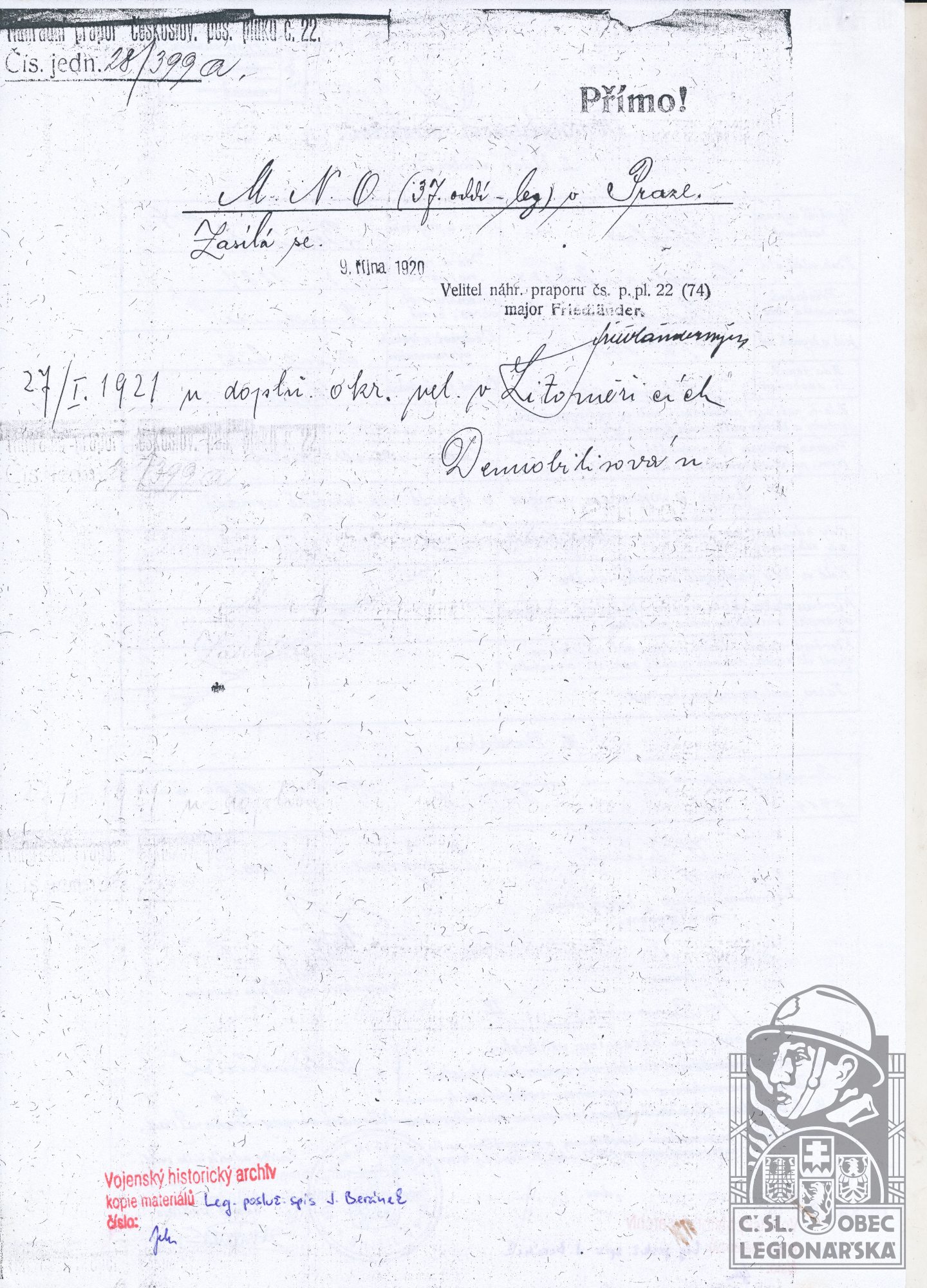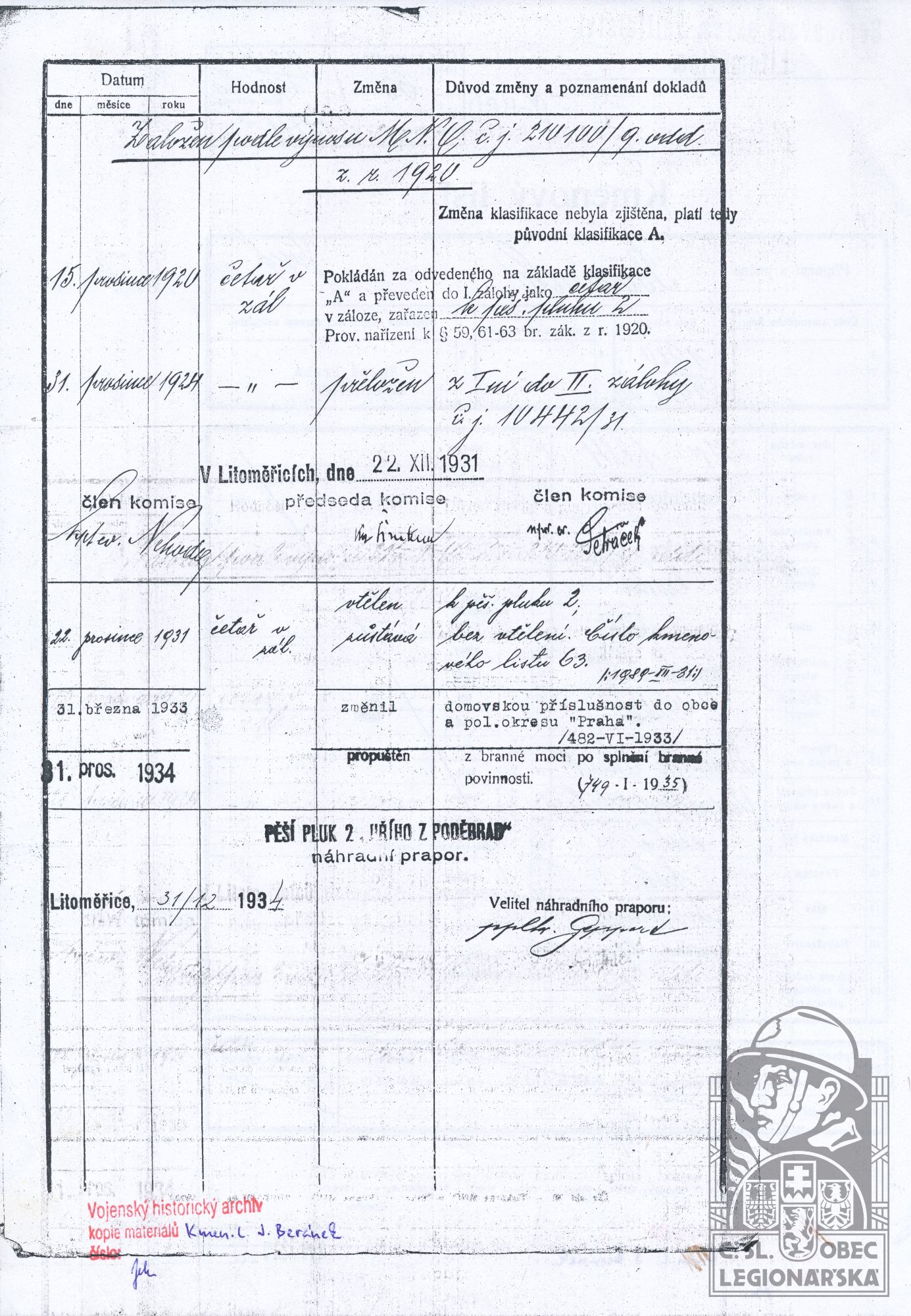Konec v legiích:17.11.1920 ( Demobilizován )