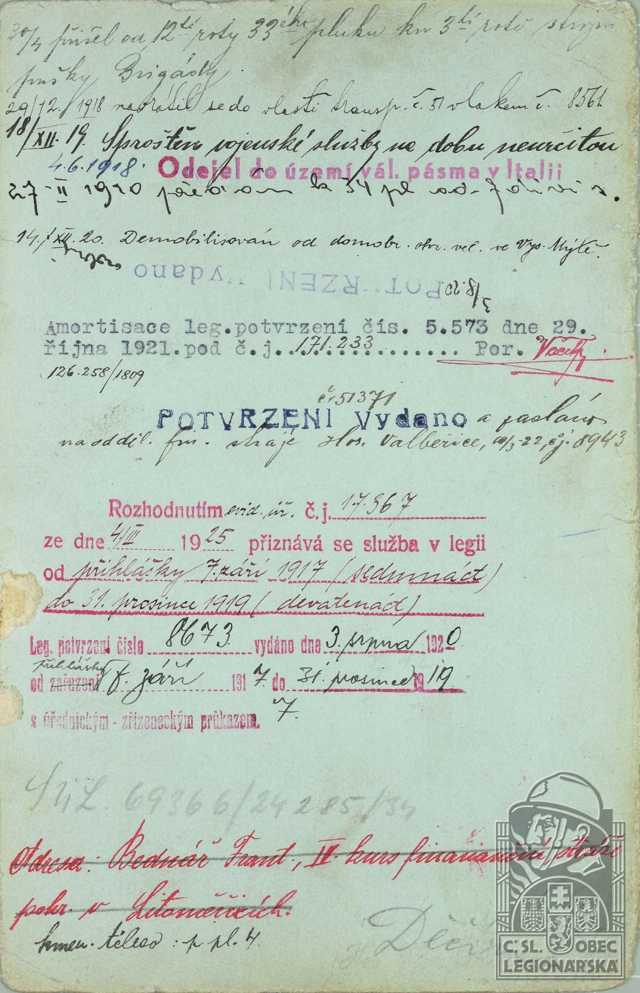 Konec v legiích:9.9.1920 ( Demobilizován )