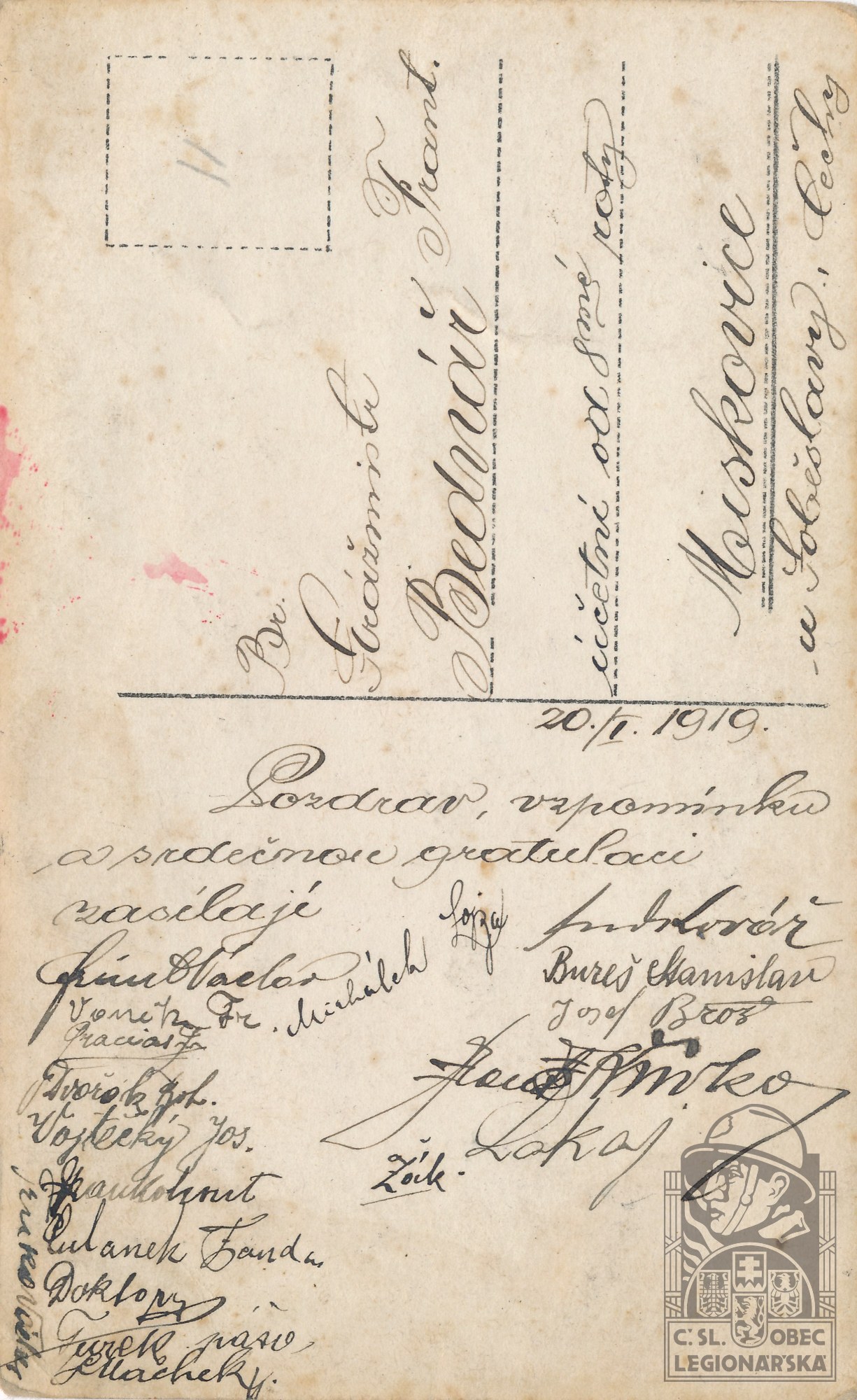 Jednotka v době zařazení:33.p.pl. ( Čs. legie v Itálii )